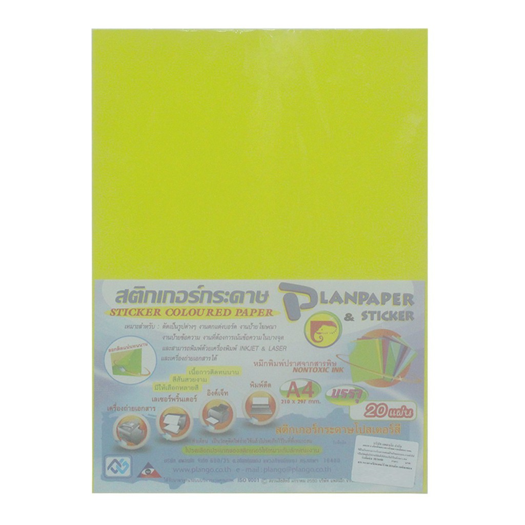 PLANGO กระดาษสติ๊กเกอร์ A4 รุ่น PP/A405 สีเหลืองอ่อน (แพ็ค 20 แผ่น) |ZWG|