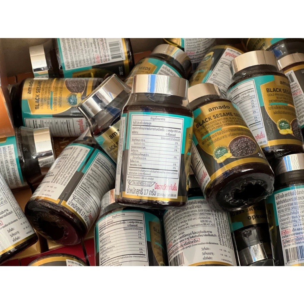 Amado Black Sesame Seeds อมาโด้ น้ำมันงาดำ [20 แคปซูล] [2 กระปุก] ดูแลสุขภาพ บำรุงกระดูกและข้อต่อ ดูแลหัวใจและสมอง