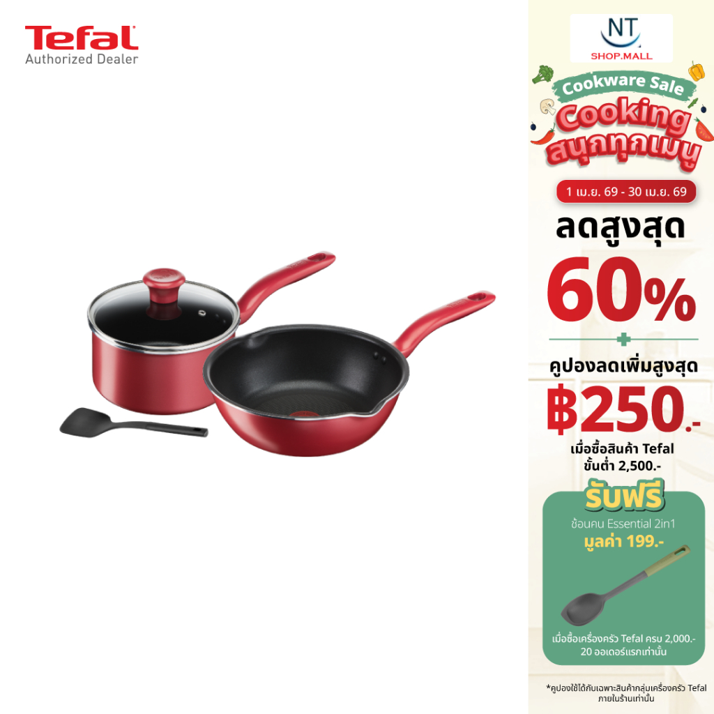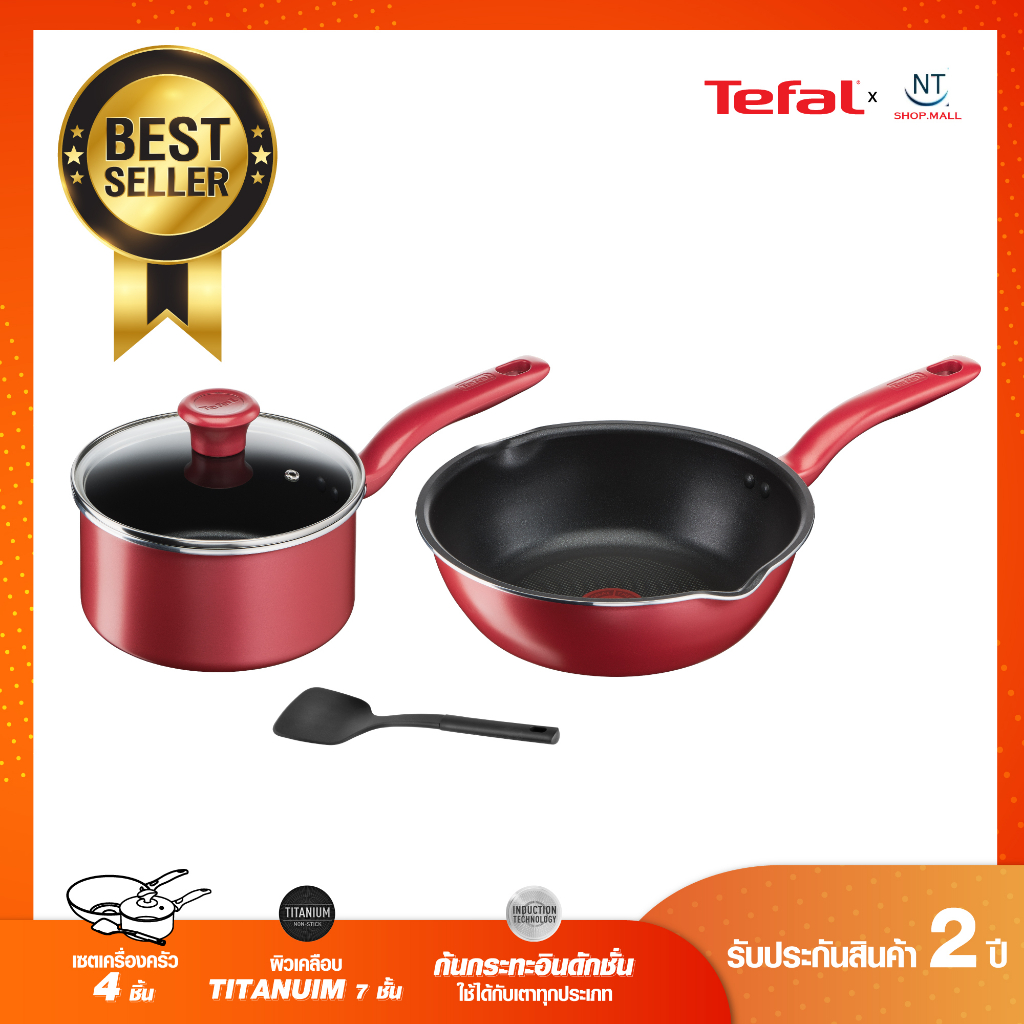 Tefal เซ็ตอุปกรณ์ทำอาหาร ก้นอินดักชั่น So Chef 4 ชิ้น (So Chef Set 4 Pcs.) G135S495 /496กระทะก้นลึกขอบ 2 หยักขนาด 24 ซม