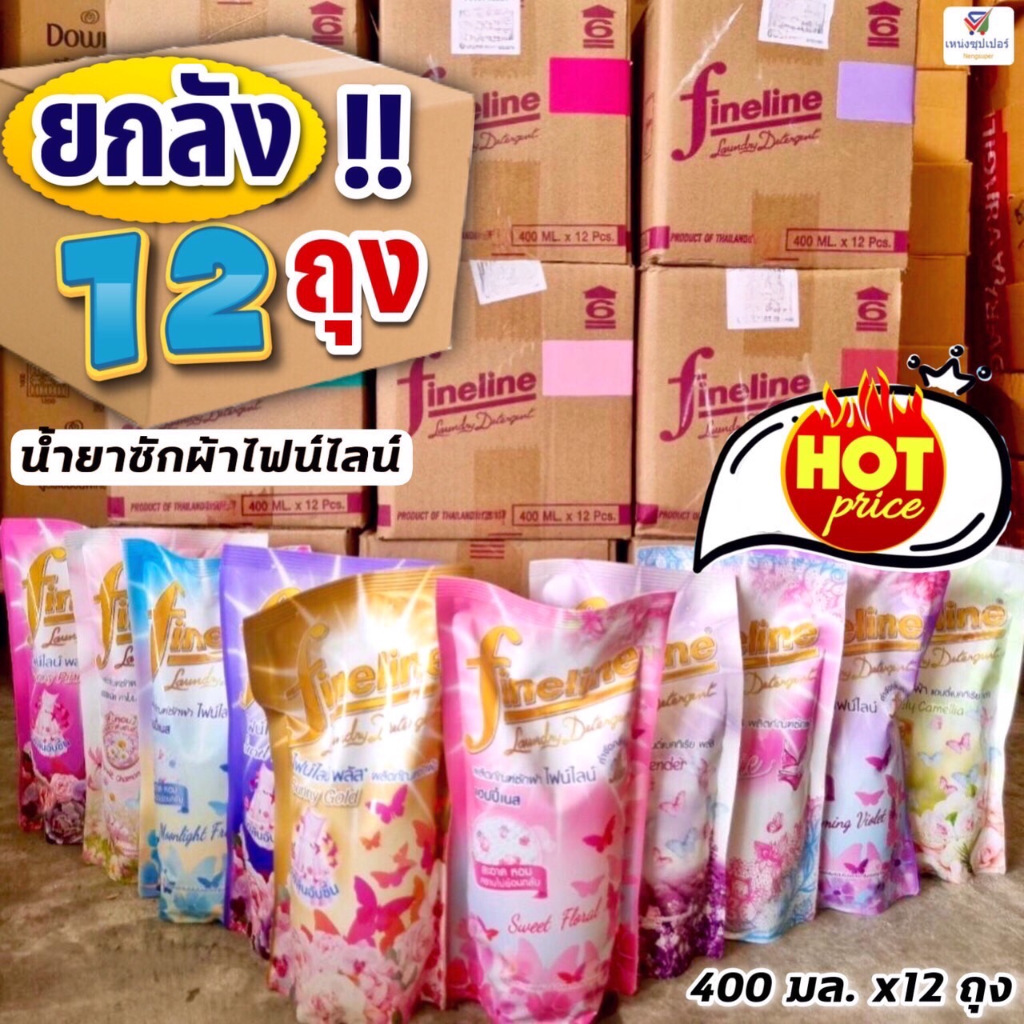 (ยกลัง 12 ถุง) ไฟน์ไลน์ น้ำยาซักผ้า 400 มล. Fineline