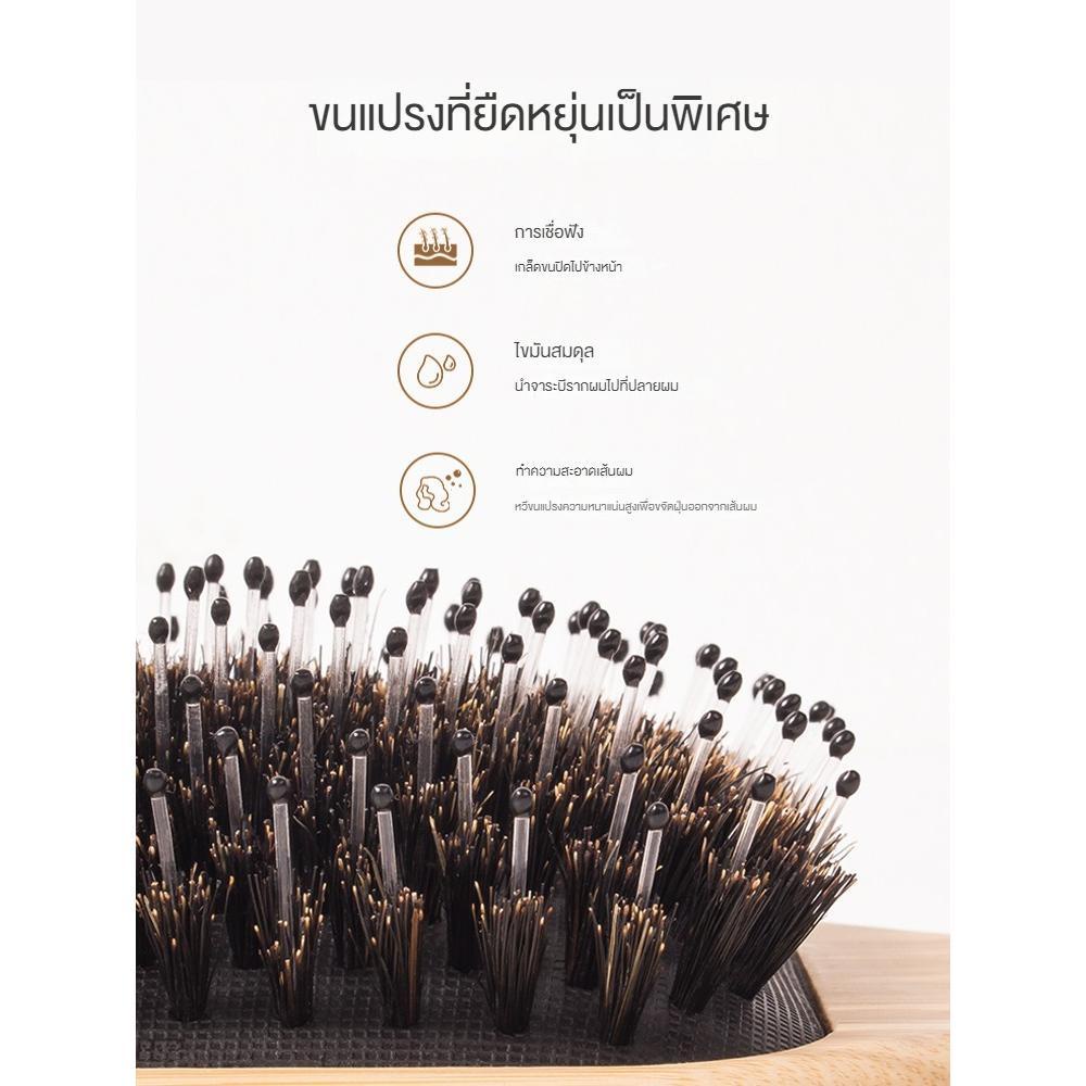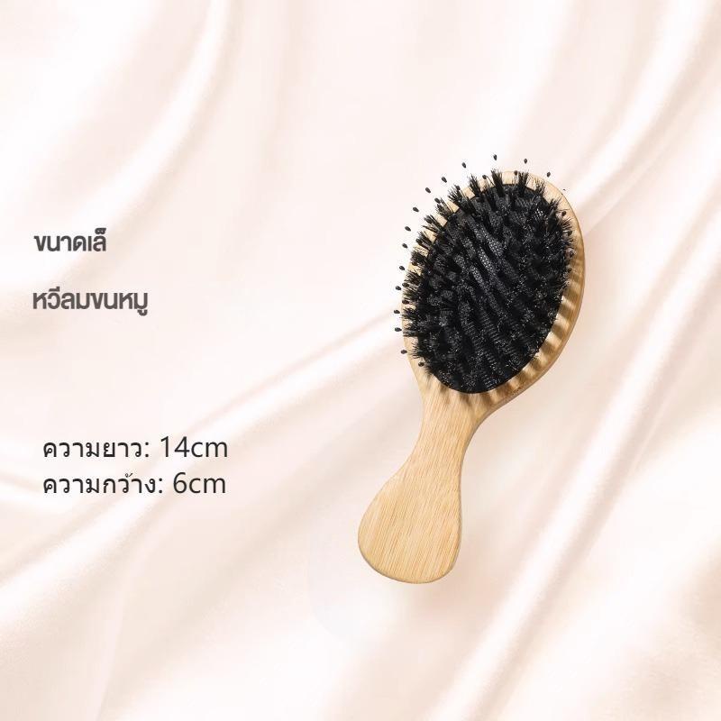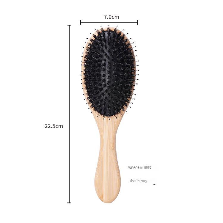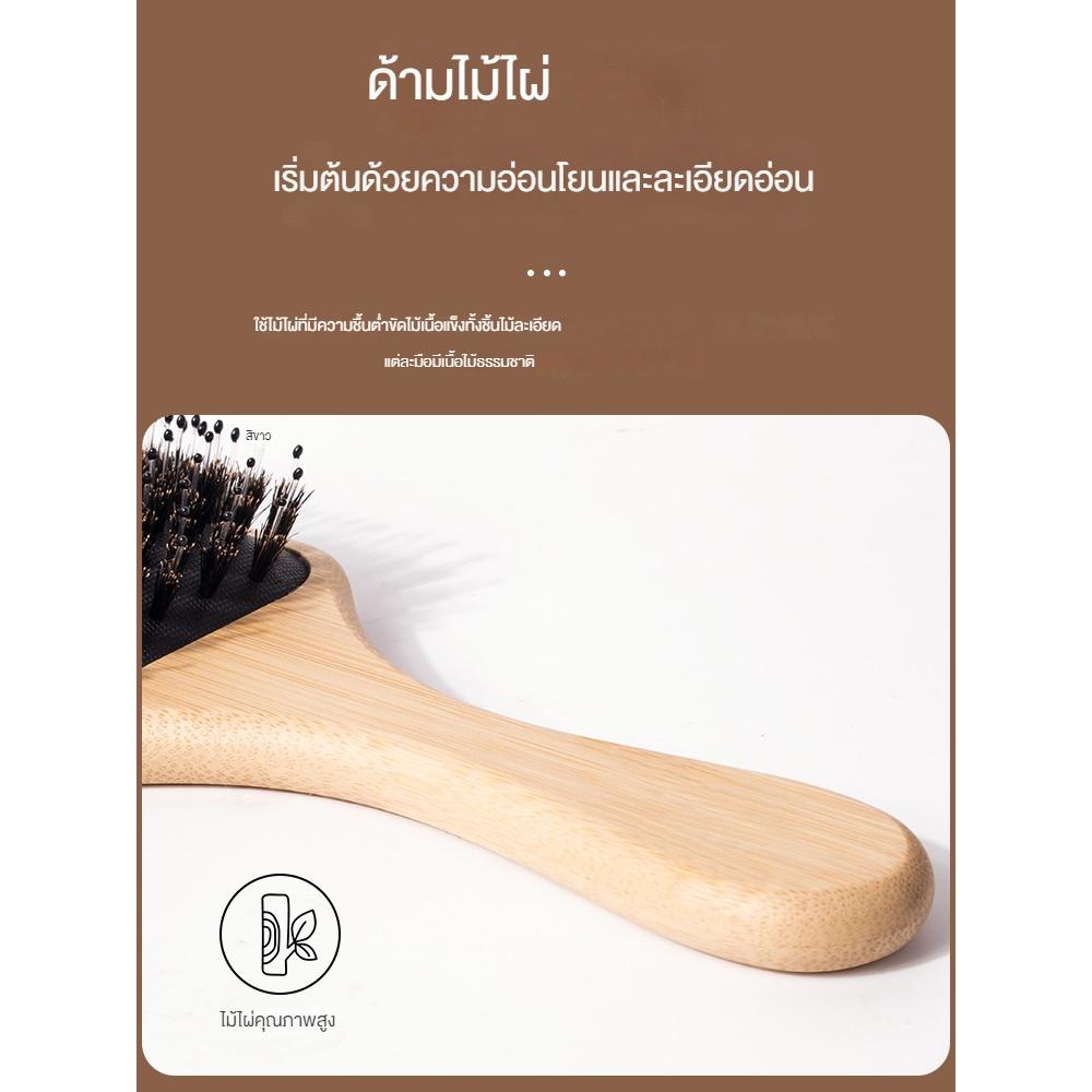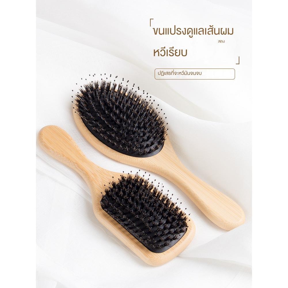 Hair Brush หวีไม้ขนหมูป่า ขนหมูอัดแน่น หวีลดผมร่วง ช่วยให้ผมเงางาม แก้ผมพันกัน ช่วยนวดศีรษะ ลดไฟฟ้าสถิต ด้ามไม้แข็งแรง