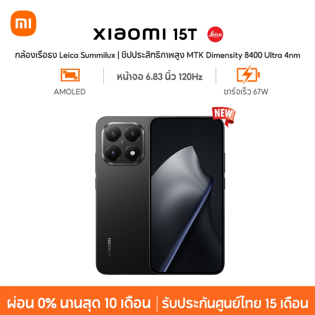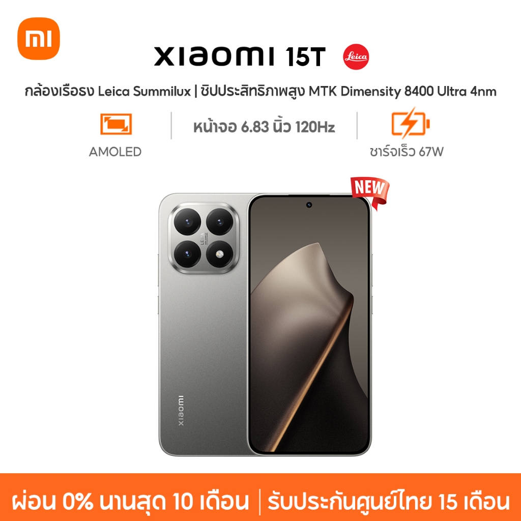 [NEW] Xiaomi 15T กล้องเรือธง Leica Summilux ชิปประสิทธิภาพสูง MTK Dimensity 8400 Ultra 4nm ชาร์จเร็ว 67W หน้าจอ 120Hz