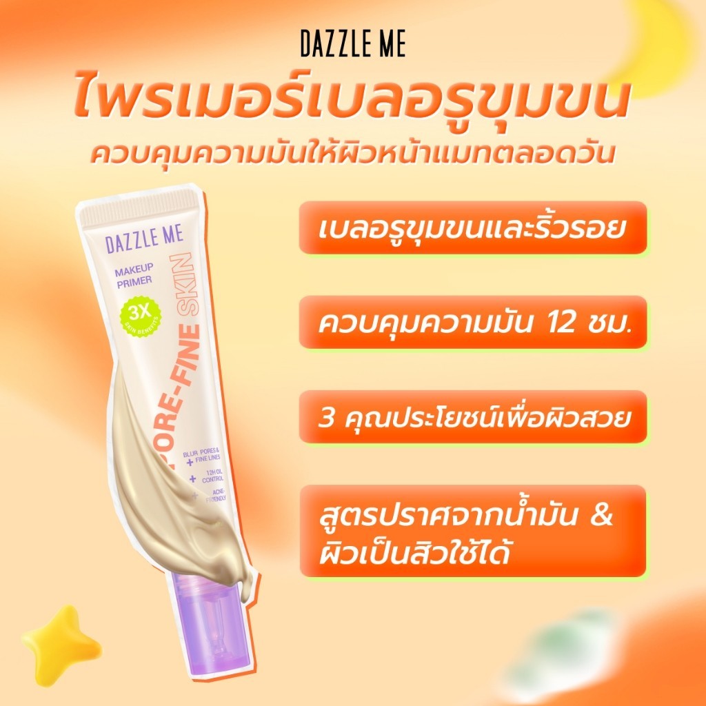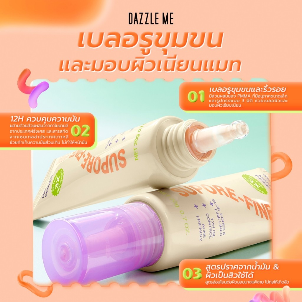 Dazzle Me Supore-Fine Skin Makeup Primer 20 g.แดซเซิล มี ไพรเมอร์ ซูพอร์ ไฟน์ สกิน เมคอัพ เบลอรูขุมขน คุมมัน
