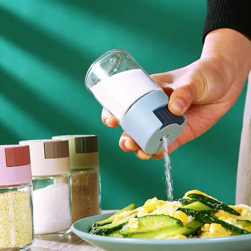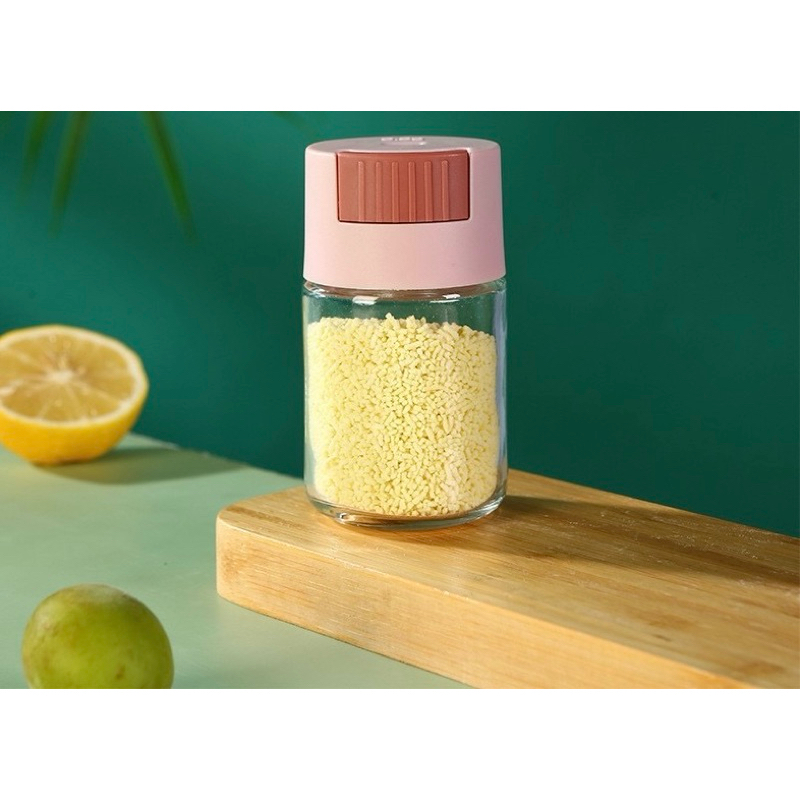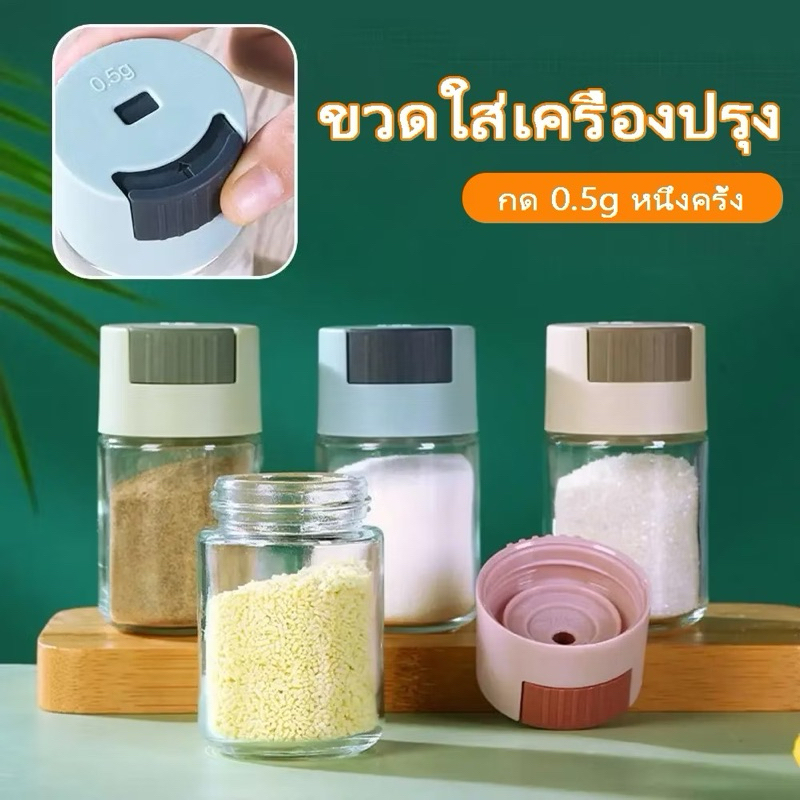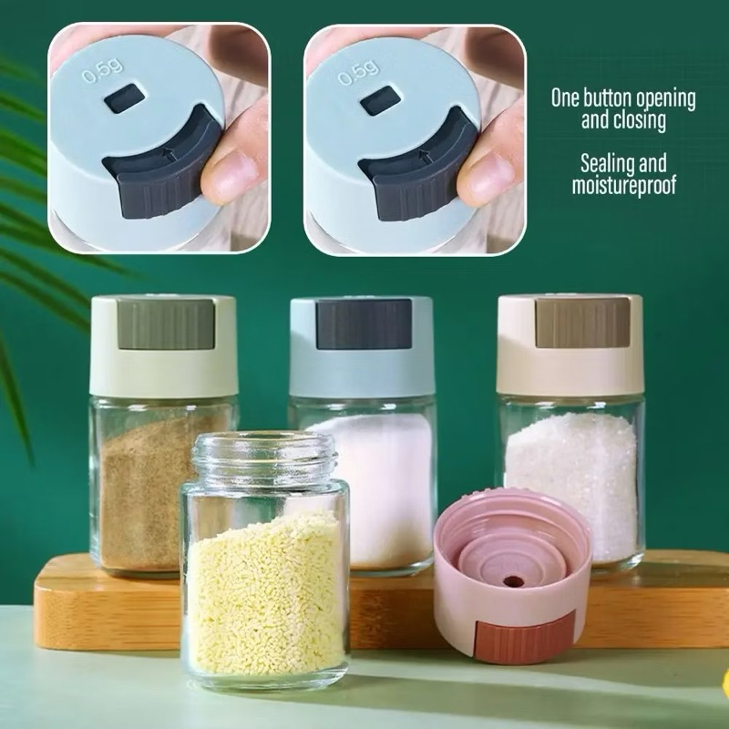kingshopping(6321)ขวดใส่เครื่องปรุง กด 0.5g หนึ่งครั้ง เครื่องครัว วัสดุเป็นแก้ว ฝาปิด ซิลิโคนซีลป้องกันการรั่วซึม 216G