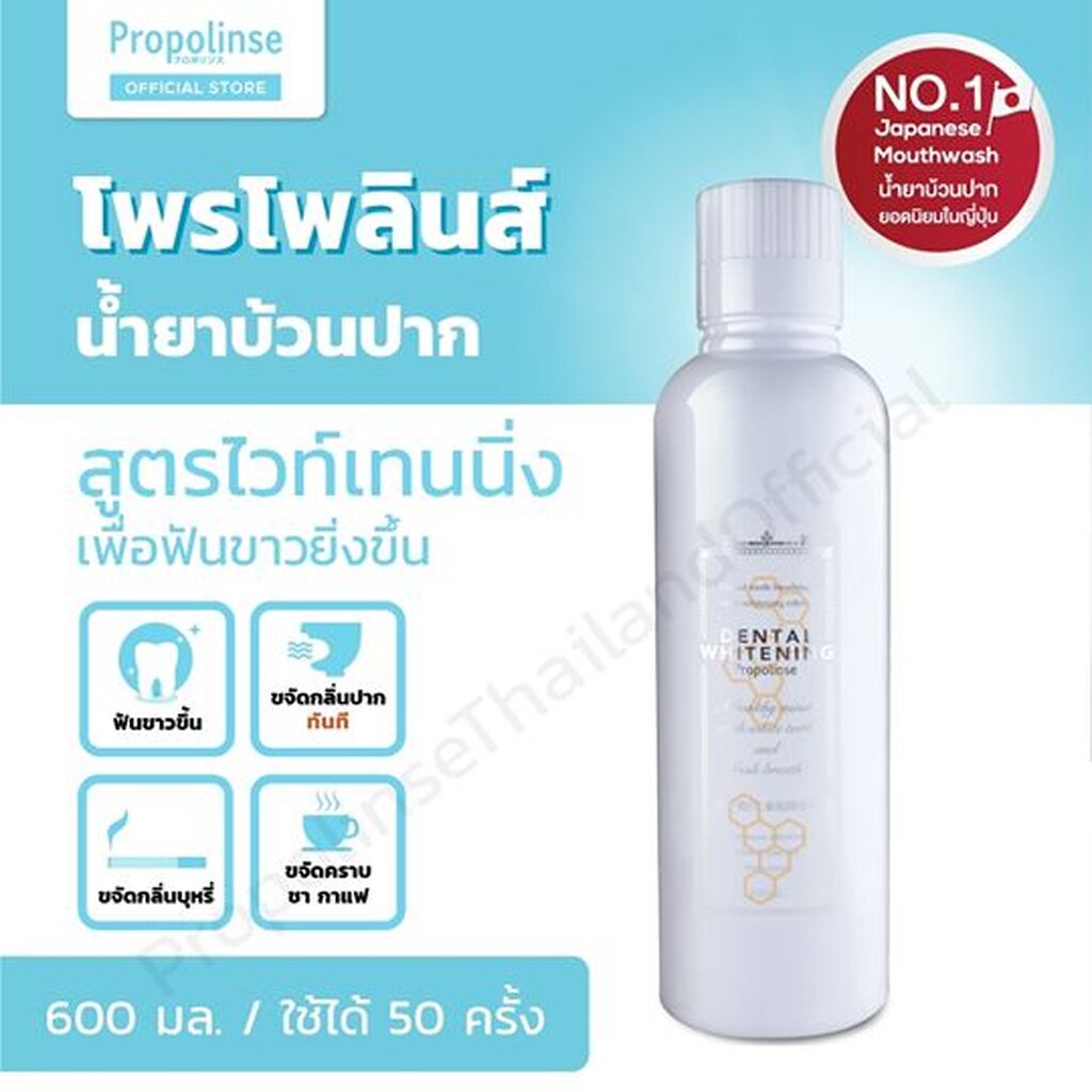 Propolinse โพรโพลินส์ น้ำยาบ้วนปาก เดนทอล ไวท์เทนนิ่ง 600 มล.