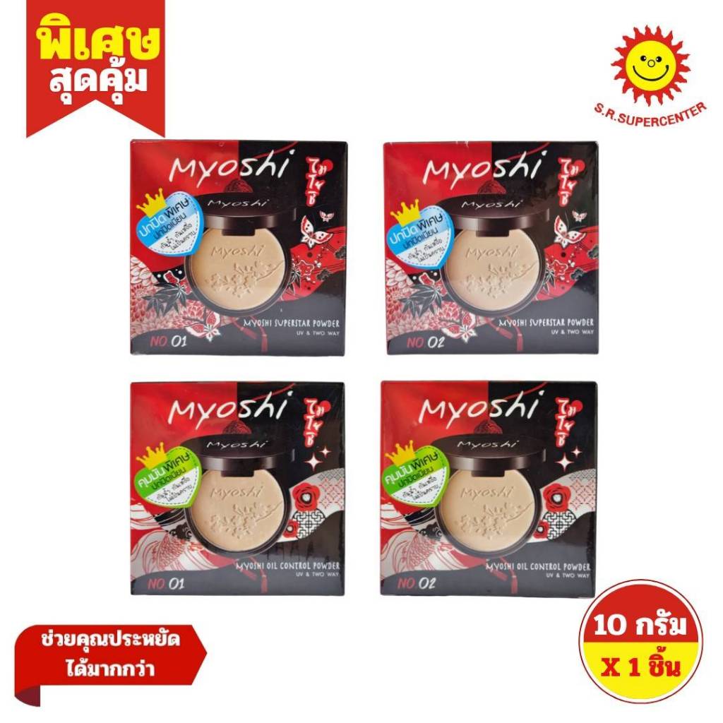 [ 1ชิ้น ] Myoshi Oil Control Powder UV&Two Way ไมโยชิ ออย คอนโทรล พาวเดอร์ แป้งผสมรองพื้น ขนาด 10 กรัม (1ชิ้น) คละสูตร