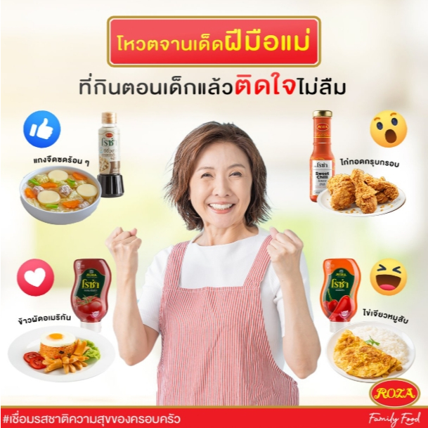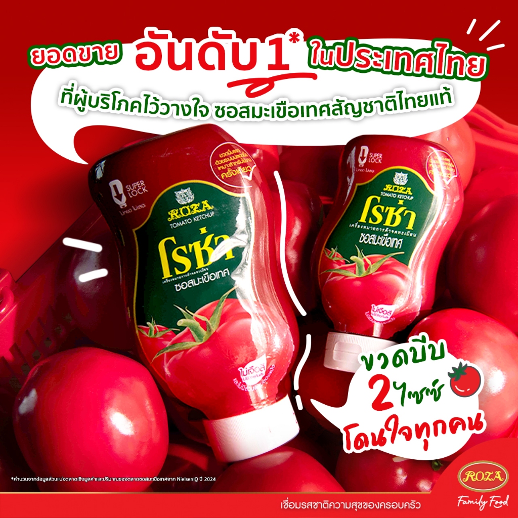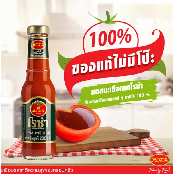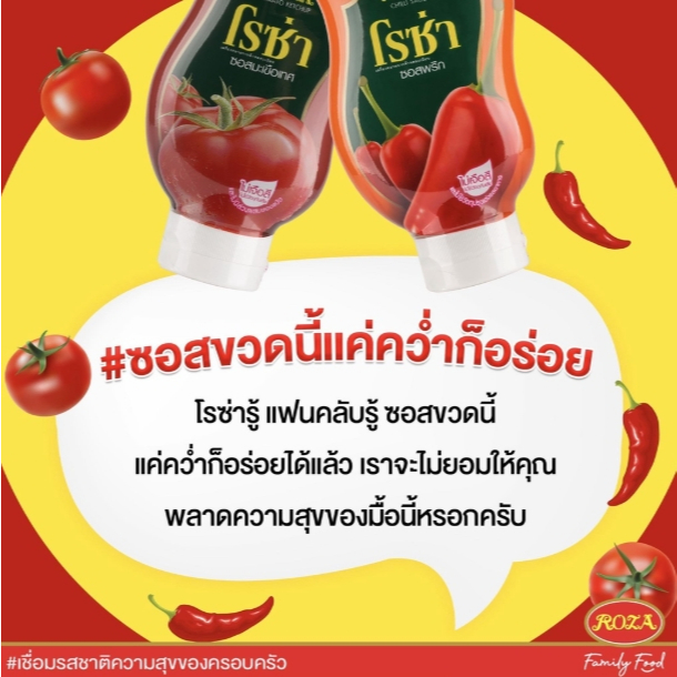 Roza โรซ่า ซอสมะเขือเทศ/ซอสพริก 200/250/300 กรัม ผลิตจากมะเขือเทศ ไม่มีแป้ง