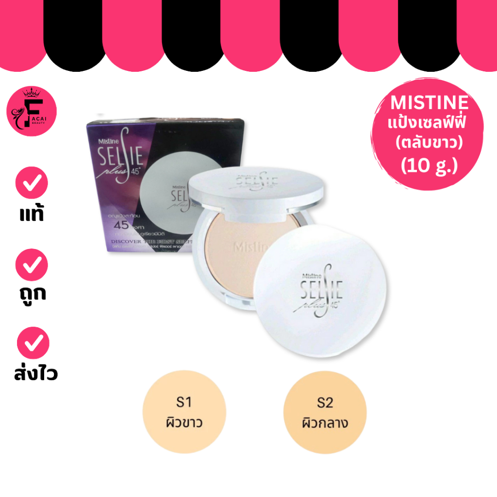 (1 ตลับ) Mistine Selsie 45˚ - มิสทิน เซลฟ์ฟี่ 45 องศา แป้งมิสทิน 2 เฉดสี (10 g.)
