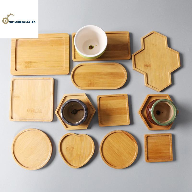 FOURSUN ตกแต่งบ้านสไตล์เรียบง่ายผู้ถือบอนไซฐานสี่เหลี่ยมถาดไม้ไม้ไผ่ TH