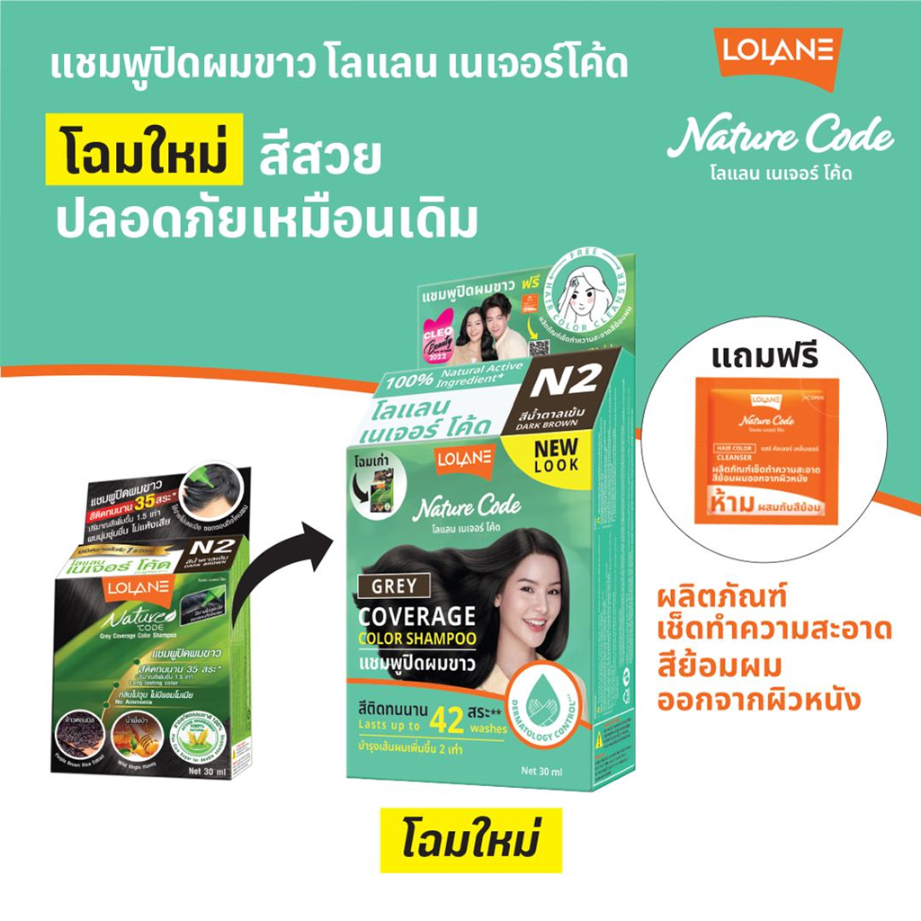 แชมพูเปลี่ยนสีผม โลแลน เนเจอร์ โค้ด N1-F3 แชมพู ปิดผมขาว ปิดหงอก LOLANE Nature code shampoo