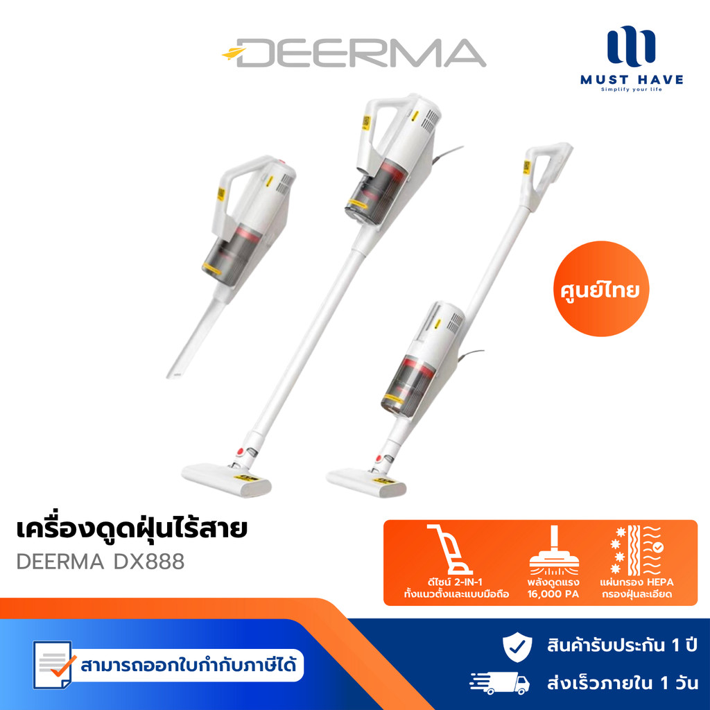 Deerma Handheld Vacuum Cleaner DX888 เครื่องดูดฝุ่น ดูดฝุ่น 3 in 1 ที่ดูดฝุ่น เครื่องดูดฝุ่นแบบด้ามจับ