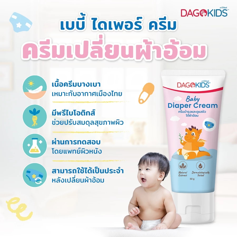 [2 แถม 2] DAGOKIDS Baby Diaper Cream x4 หลอดครีมเปลี่ยนผ้าอ้อม บำรุงและดูแลผิวใต้ผ้าอ้อม (ขนาด 50 g.) +ของแถม