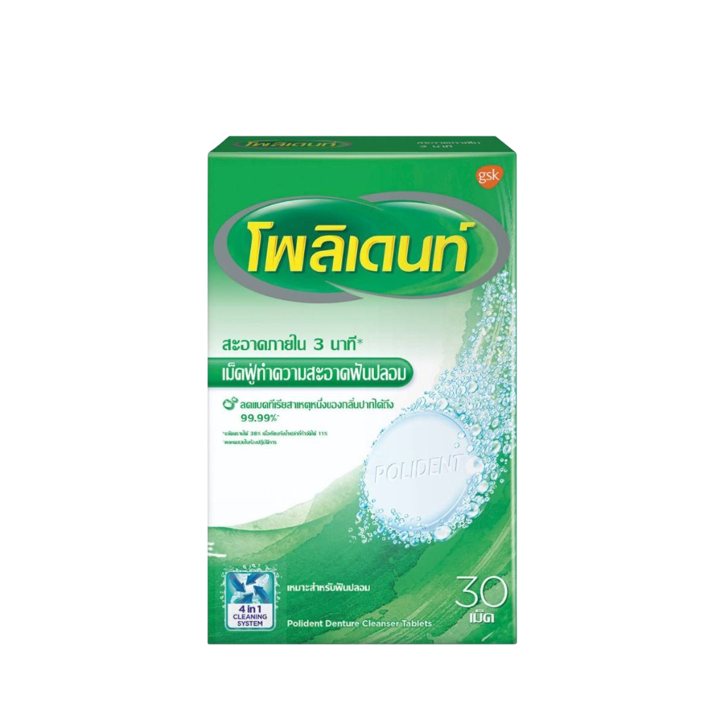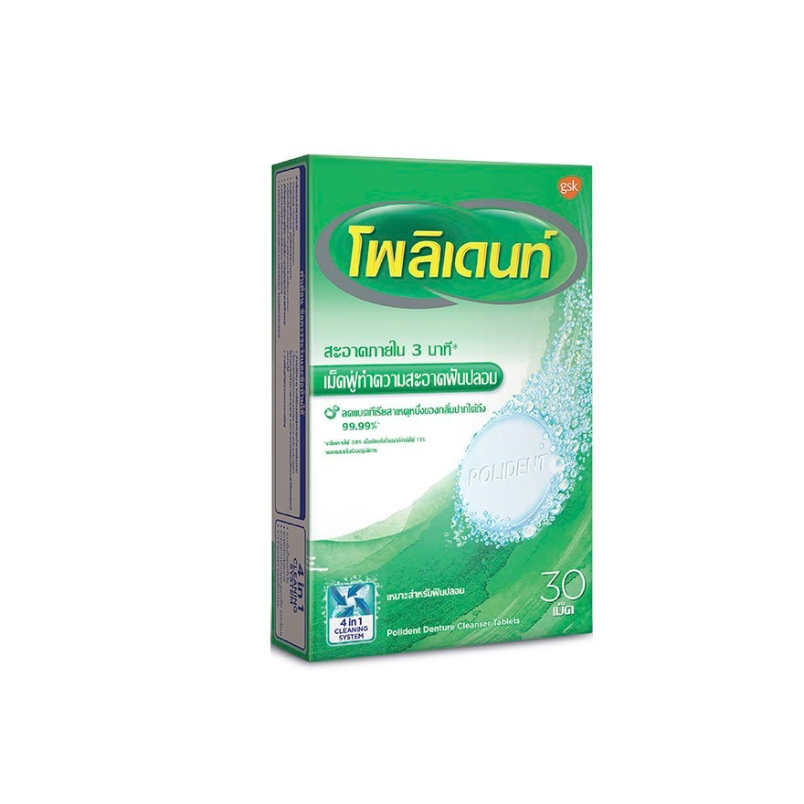 ส่งเร็ว !! ( 1 กล่อง ) Polident โพลิเดนท์ เม็ดฟู่ทำความสะอาดฟันปลอม กล่อง 30 เม็ด (สินค้าขายดี)(ถูกที่สุด)