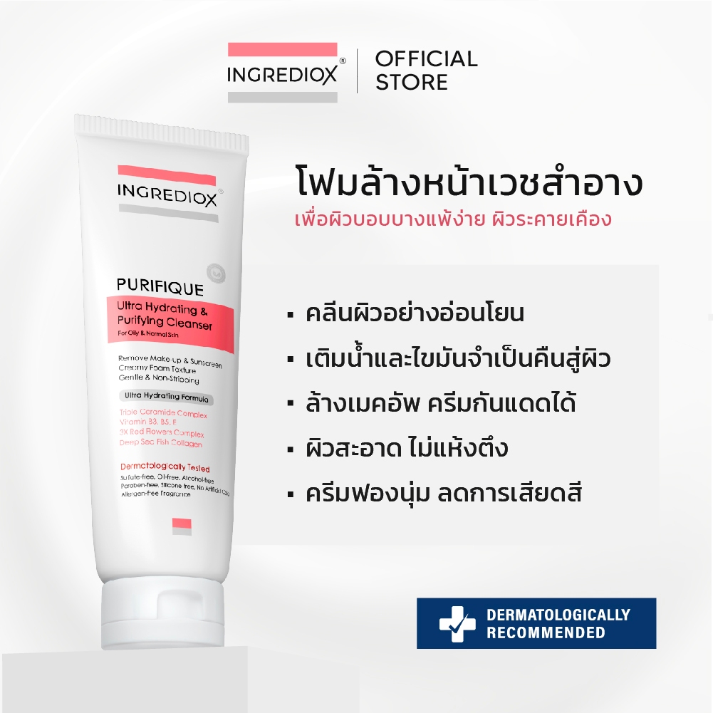 INGREDIOX : PURIFIQUE Ultra Hydrating Foaming Cleanser โฟมล้างหน้าสูตรอ่อนโยนพิเศษ สำหรับผิวบอบบางแพ้ง่าย