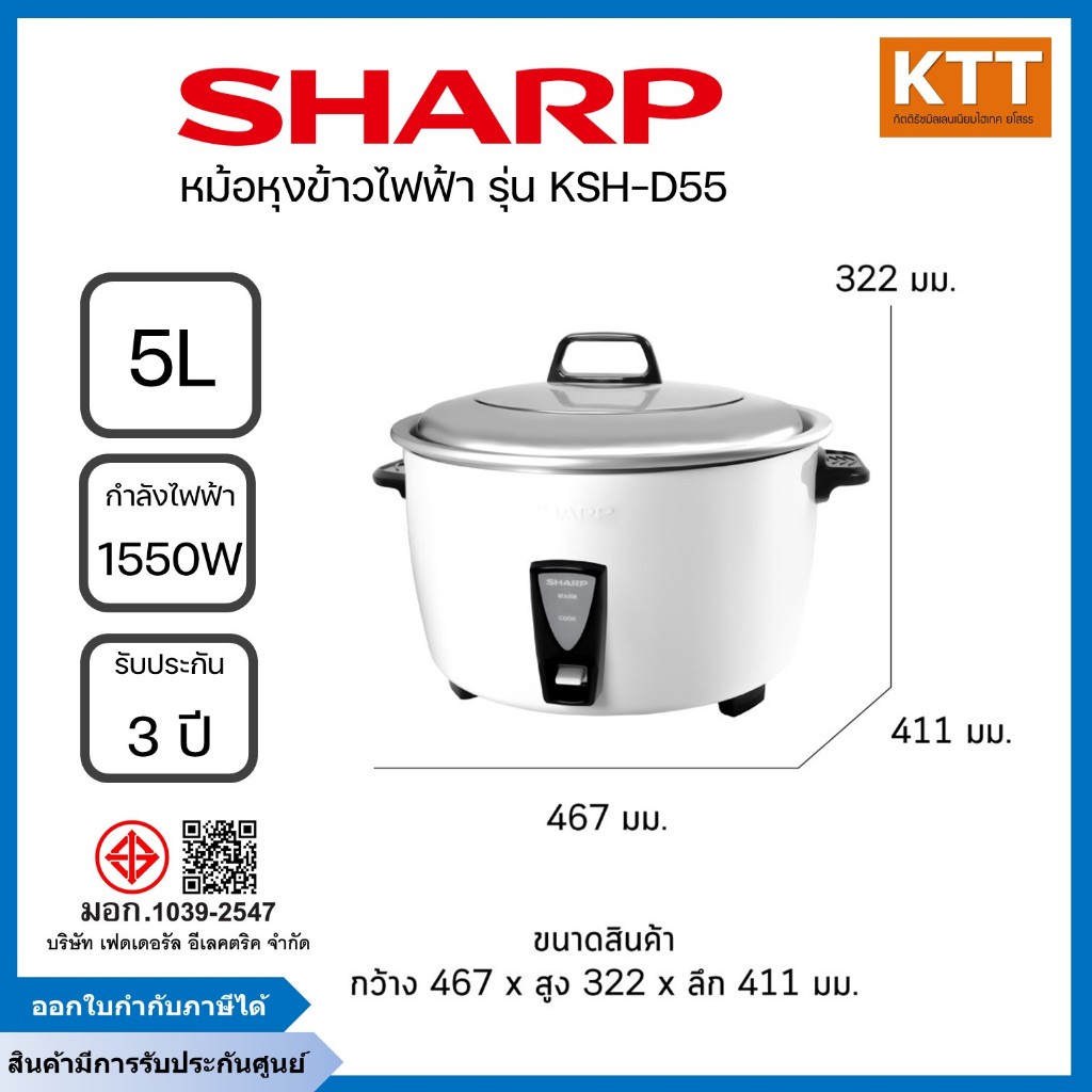 SHARP หม้อหุงข้าว ไฟฟ้า รุ่น ซูโม่ KSH-D55 ขนาด 5 ลิตร