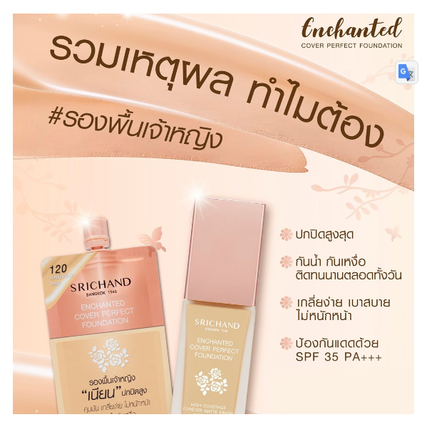 แบบซอง รองพื้น รองพื้นเจ้าหญิง ศรีจันทร์ ฟาวน์เดชั่น Srichand Foundation SPF50 PA+++ 6/7 g