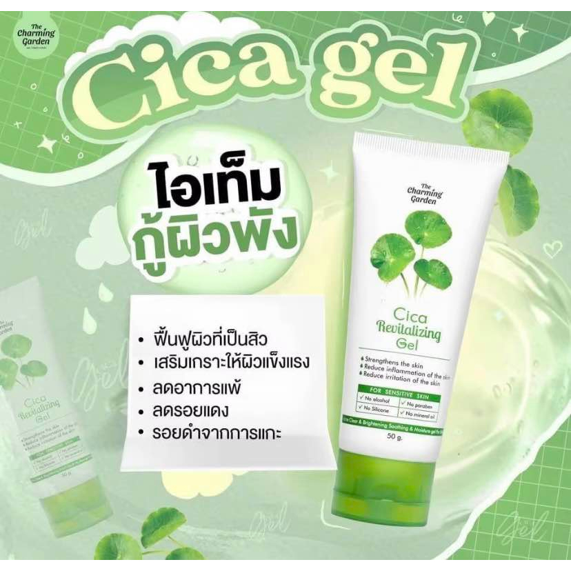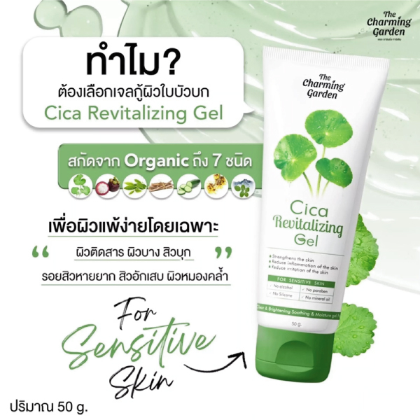 Cica Revitalizing Gel เจลกู้ผิวใบบัวบก /เจลมะเขือเทศ กู้ผิวโทรม Tomato Revitalizing Gel 50 g. The charming garden