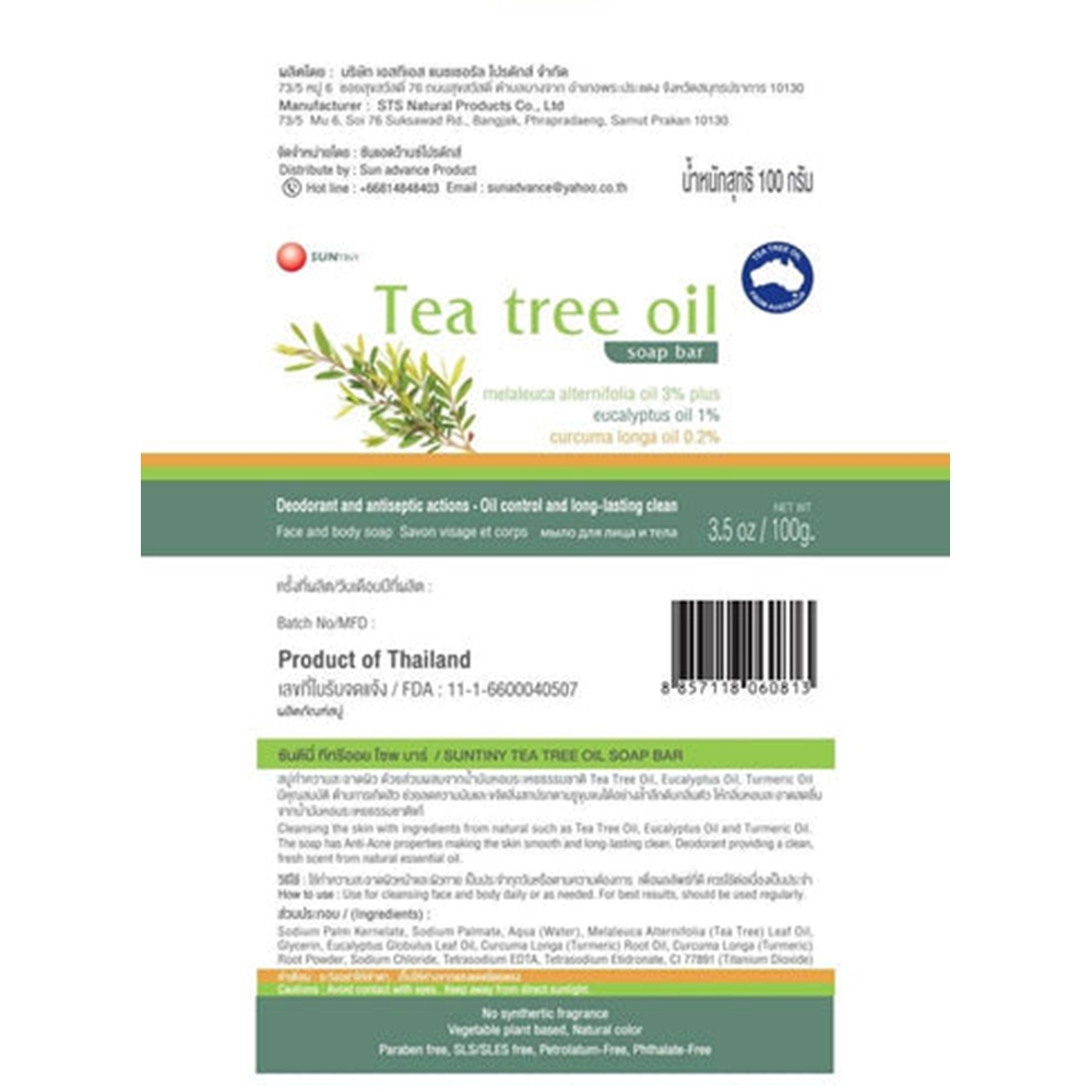 Sun Tiny Tea Tree Oil Soap Bar 100 g. ซันตินี่ ที่ทรีออย โซพ บาร์ 100 กรัม