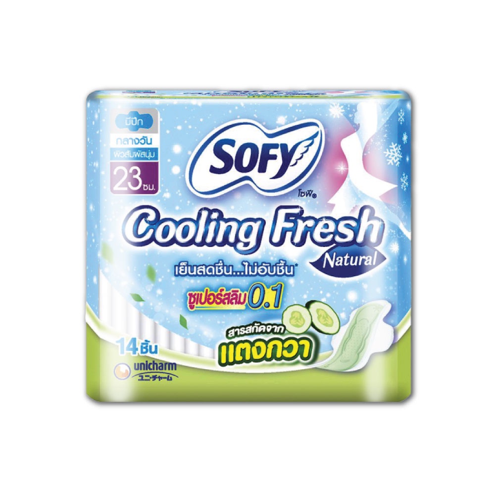 Sofy Cooling Fresh Natural Sanitary Napkins Super Slim 0.1 Wing 23cm. 14pcs.