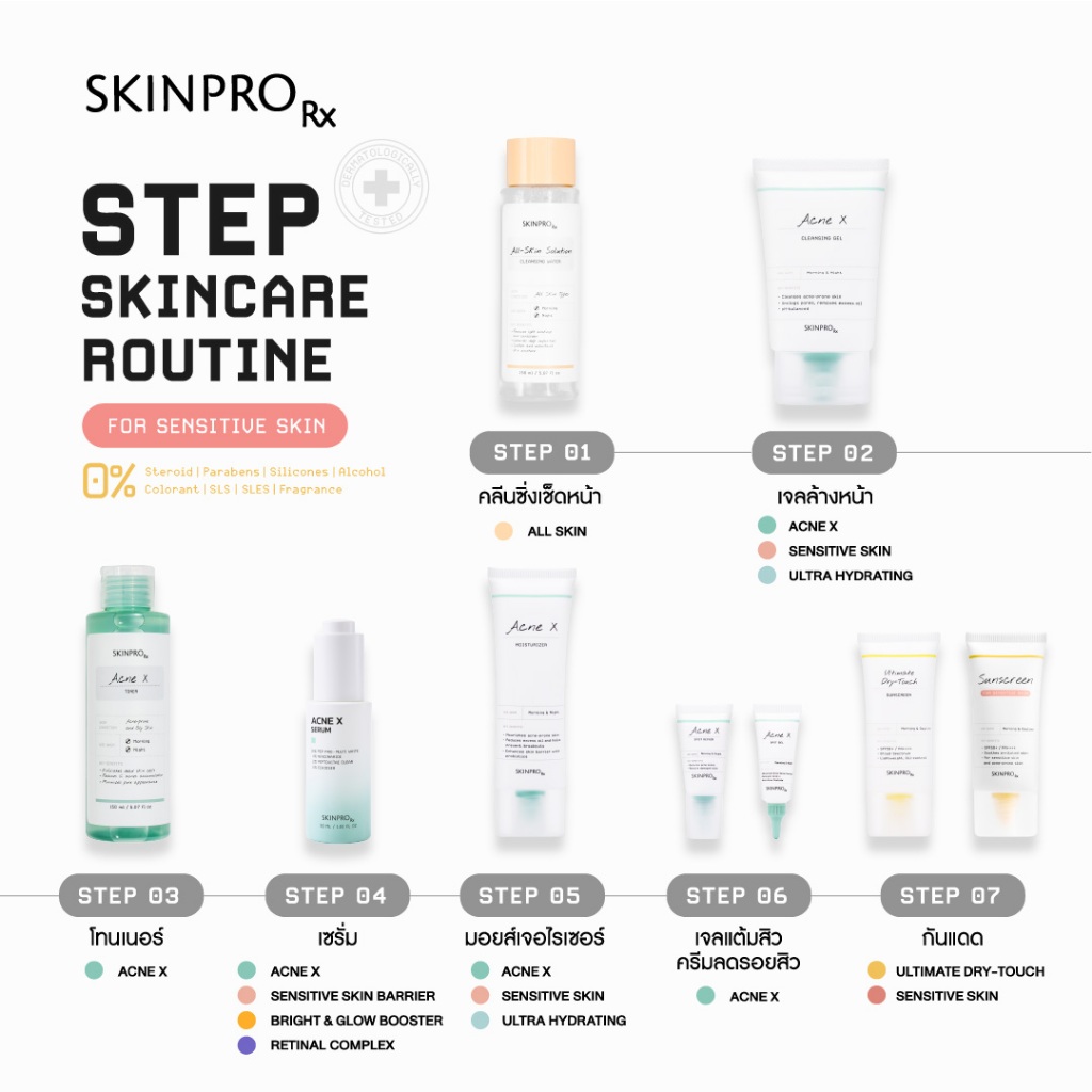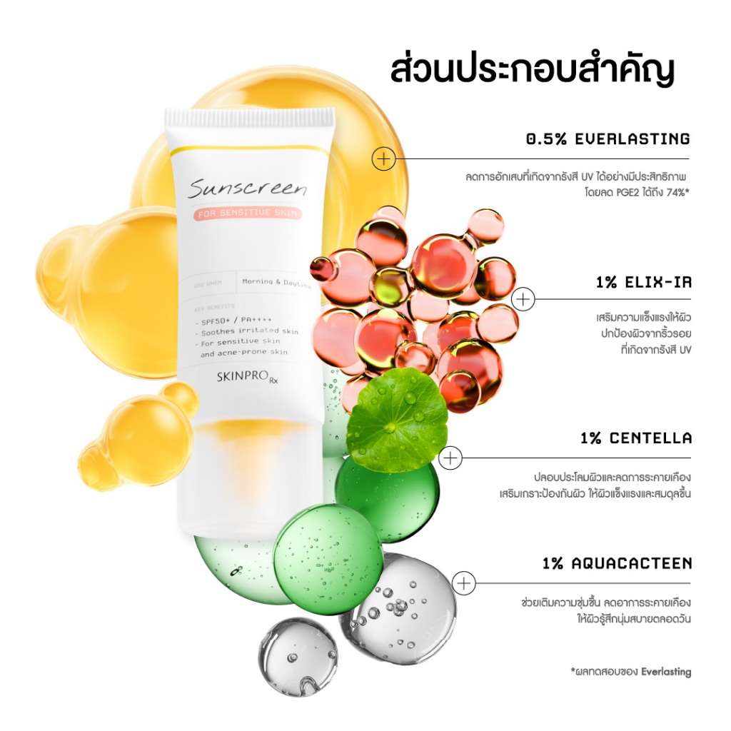 [ใหม่] SKINPRO Rx Sunscreen For Sensitive Skin SPF50+ PA++++ 30 g. ครีมกันแดด สำหรับผิวบอบบาง แพ้ง่าย