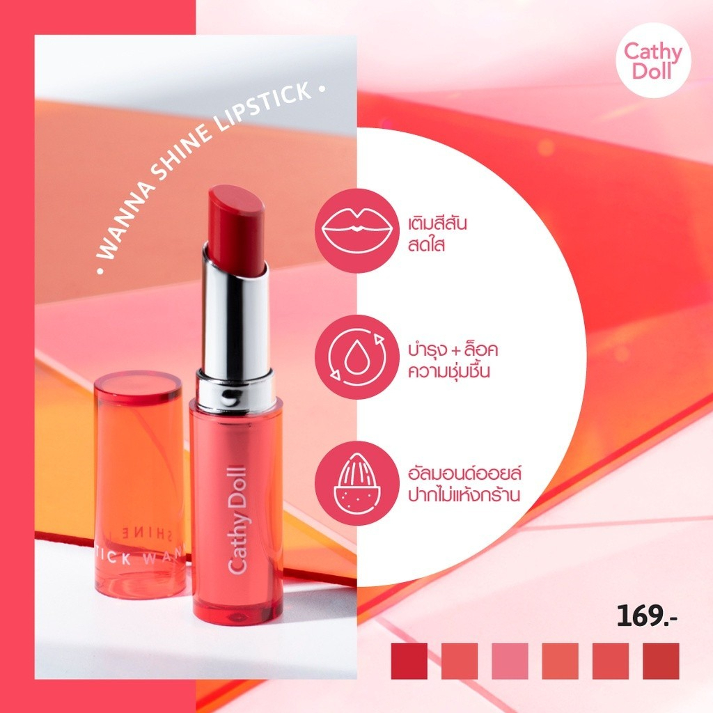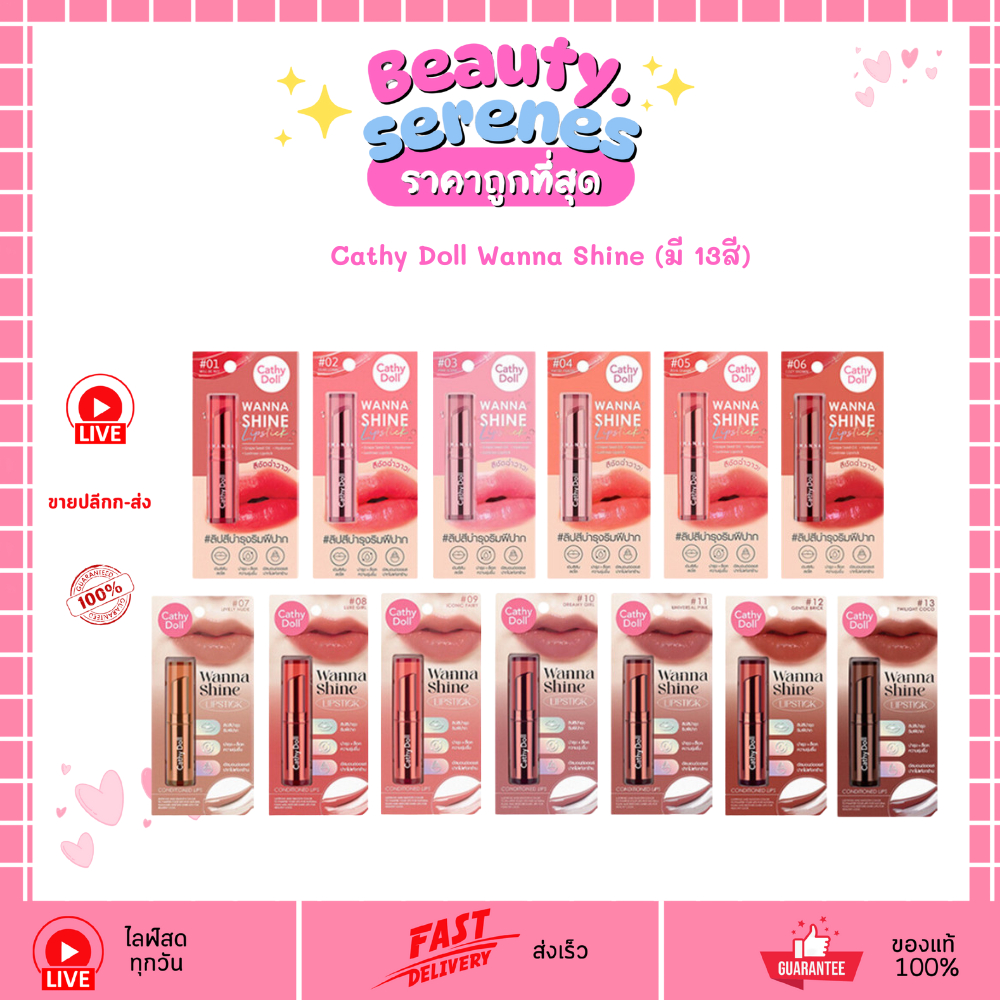 ลิปวันนาไชน์เคที่ดอลล์ Cathy Doll Wanna Shine เนื้อแมท 3 กรัม สีชัดติดทน (13 เฉดสี)