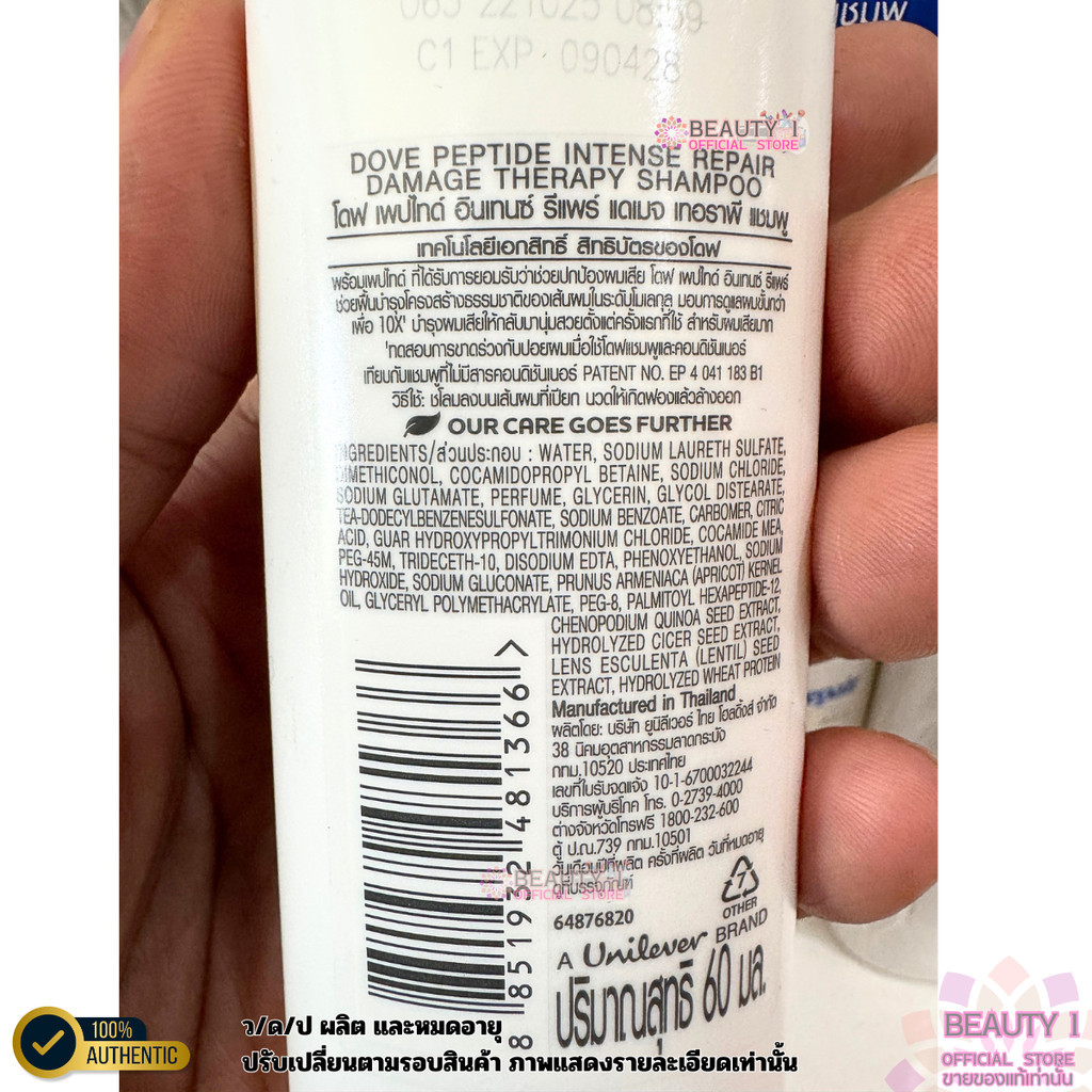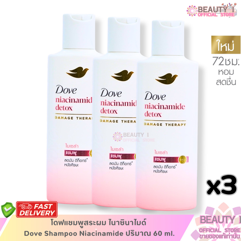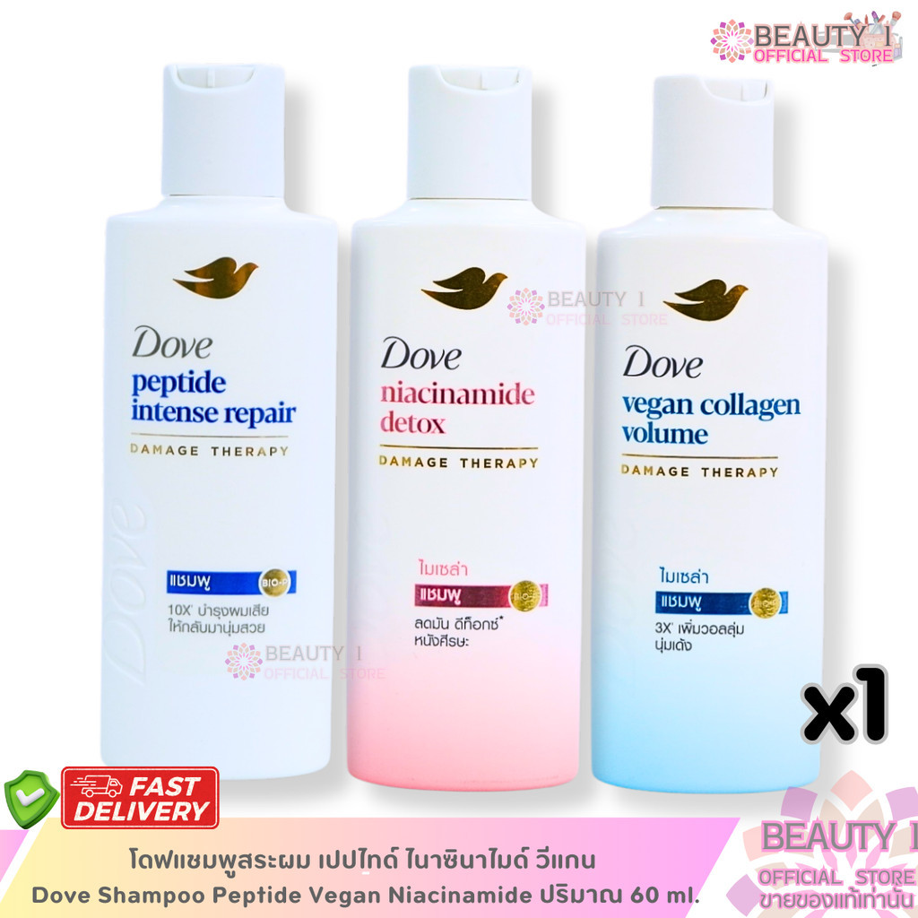 โปร 3 ขวด โดฟแชมพูสระผม เปปไทด์ ไนาซินาไมด์ วีแกน Dove Shampoo Peptide Vegan Niacinamide ปริมาณ 60 ml.