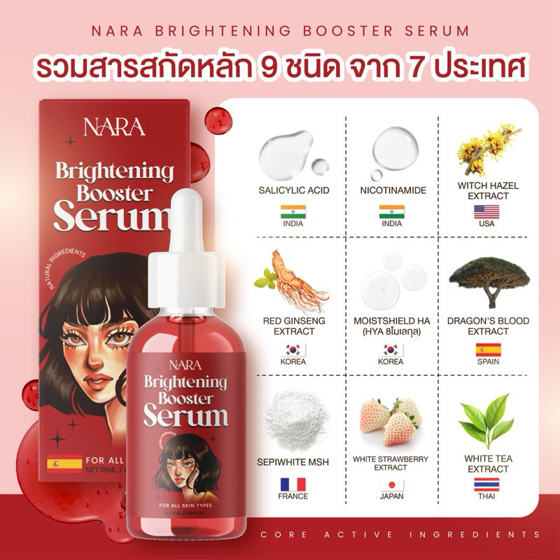 [ Flash Sale ] NARA WHITENING BOOSTER SERUM เซรั่มนารา ช่วยผิวหน้าแข็งแรงจากใต้ชั้นผิว ลดริ้วรอย