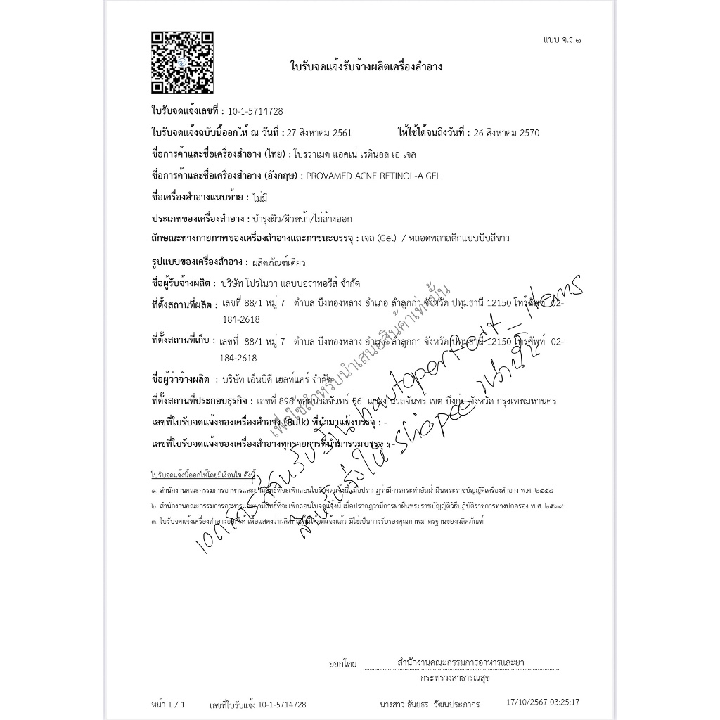 Provamed โปรวาเมด Acne Retinol - A Gel / Rapid Clear Acne Spot Gel