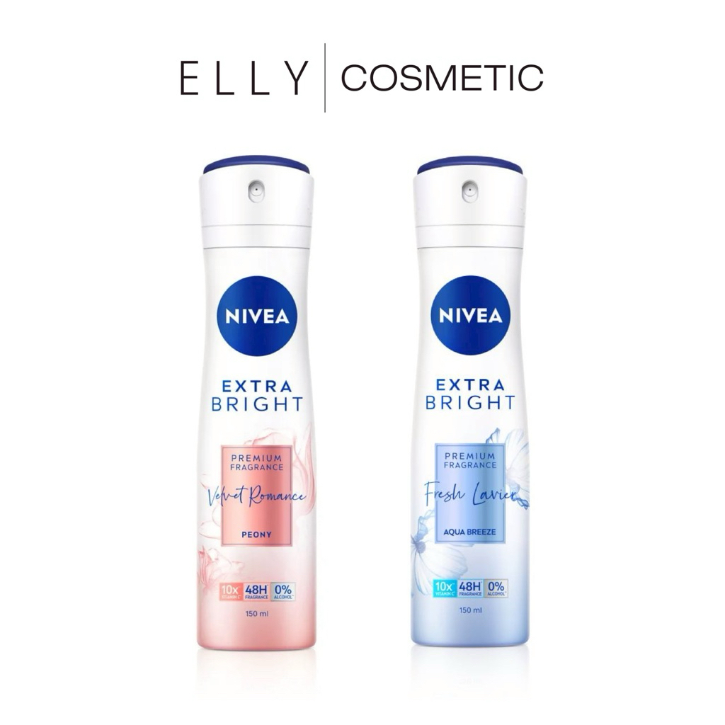 (2 กลิ่น) Nivea Extra Bright นีเวีย เอ็กซ์ตร้า ไบรท์ พรีเมียม ฟราแกรนซ์ สเปรย์ลดเหงื่อและระงับกลิ่นกาย 150 มล.