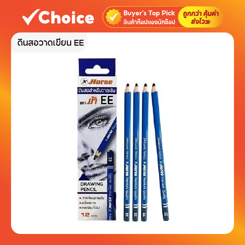 Horse (ตราม้า) ดินสอวาดเขียน EE สำหรับวาดเส้น วาดภาพ สเก็ตช์ เขียนลายเส้นทั่วไป มี 12 แท่ง/กล่อง