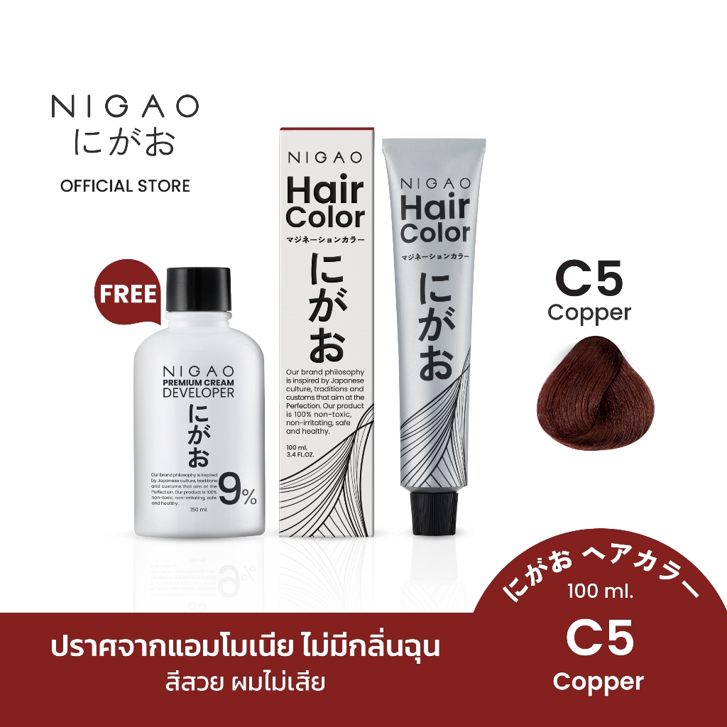 [ฟรี Developer] NIGAO Hair Color Fashion C5 Copper | นิกาโอะ ครีมเปลี่ยนสีผม สีย้อมผม สีน้ำตาลทองแดง 100 mL