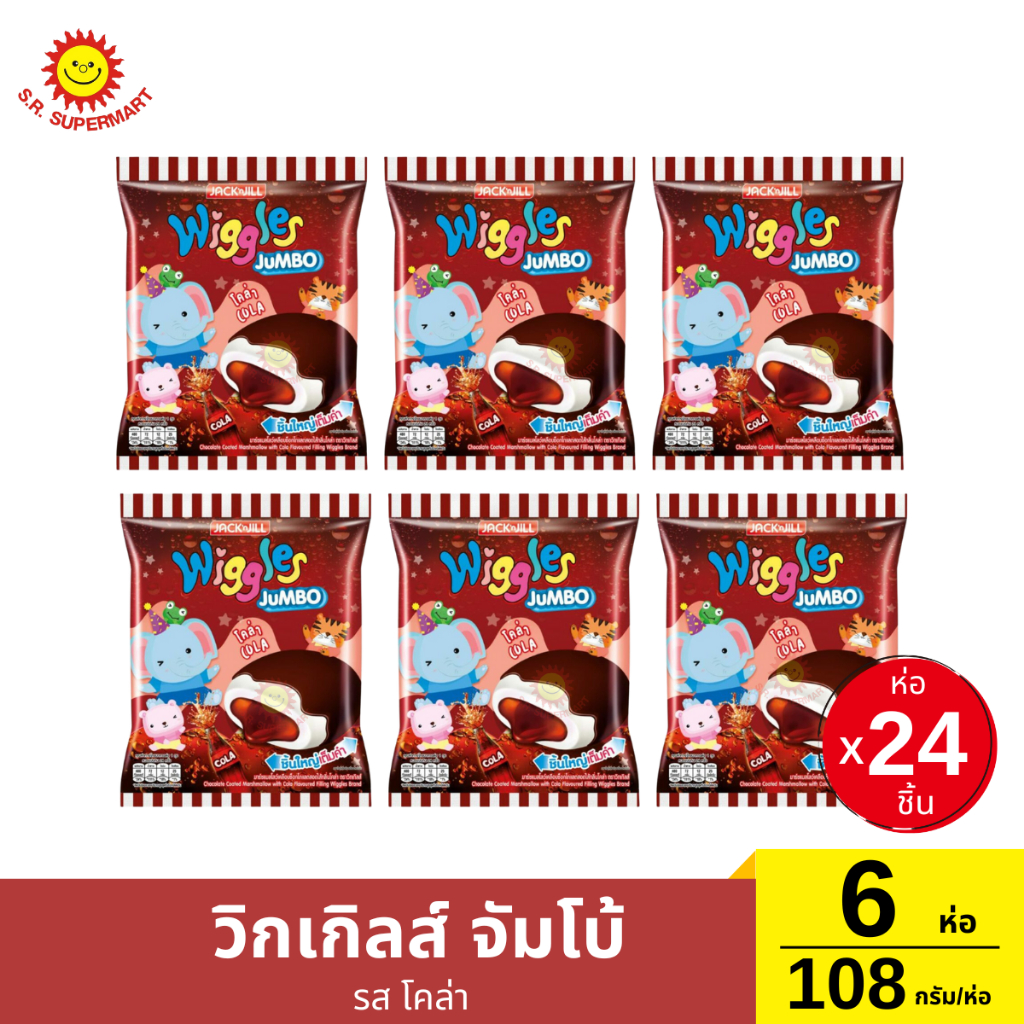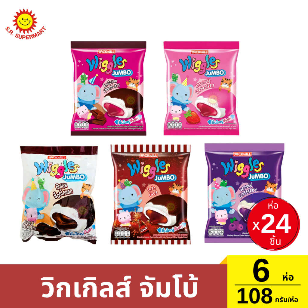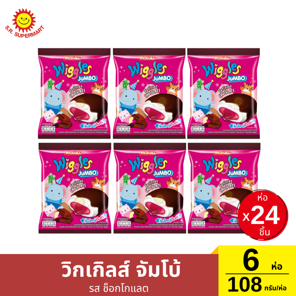 วิกเกิลส์ จัมโบ้ เซ็ต 6 ห่อ ขนาด 108 กรัม มาร์ชแมลโลว์เคลือบสอดไส้แยม