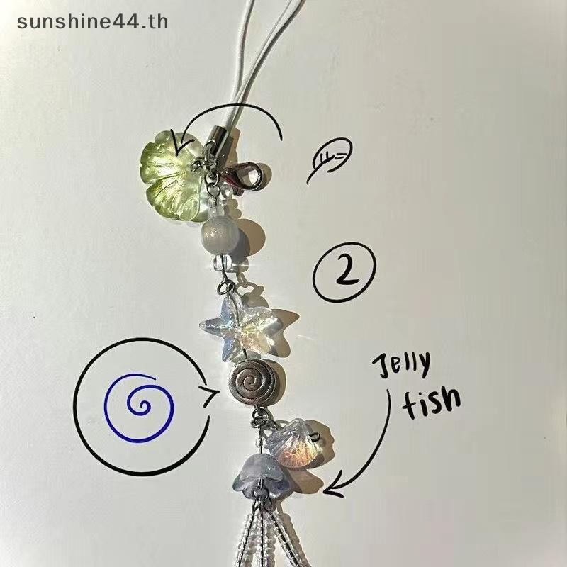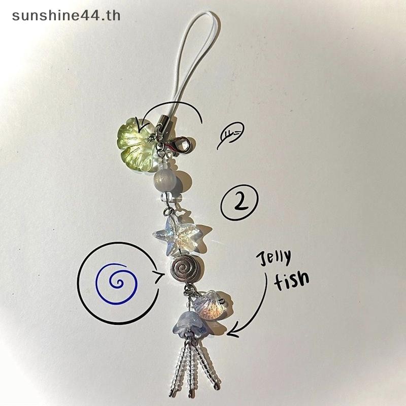 Foursun น่ารักโทรศัพท์ Charm สายคล้องฤดูร้อน Ocean สไตล์เปลือกหอย Jelly จี้ปลา Key สายคล้องสาวผู้หญิงกระเป๋าพวงกุญแจ Keycord TH