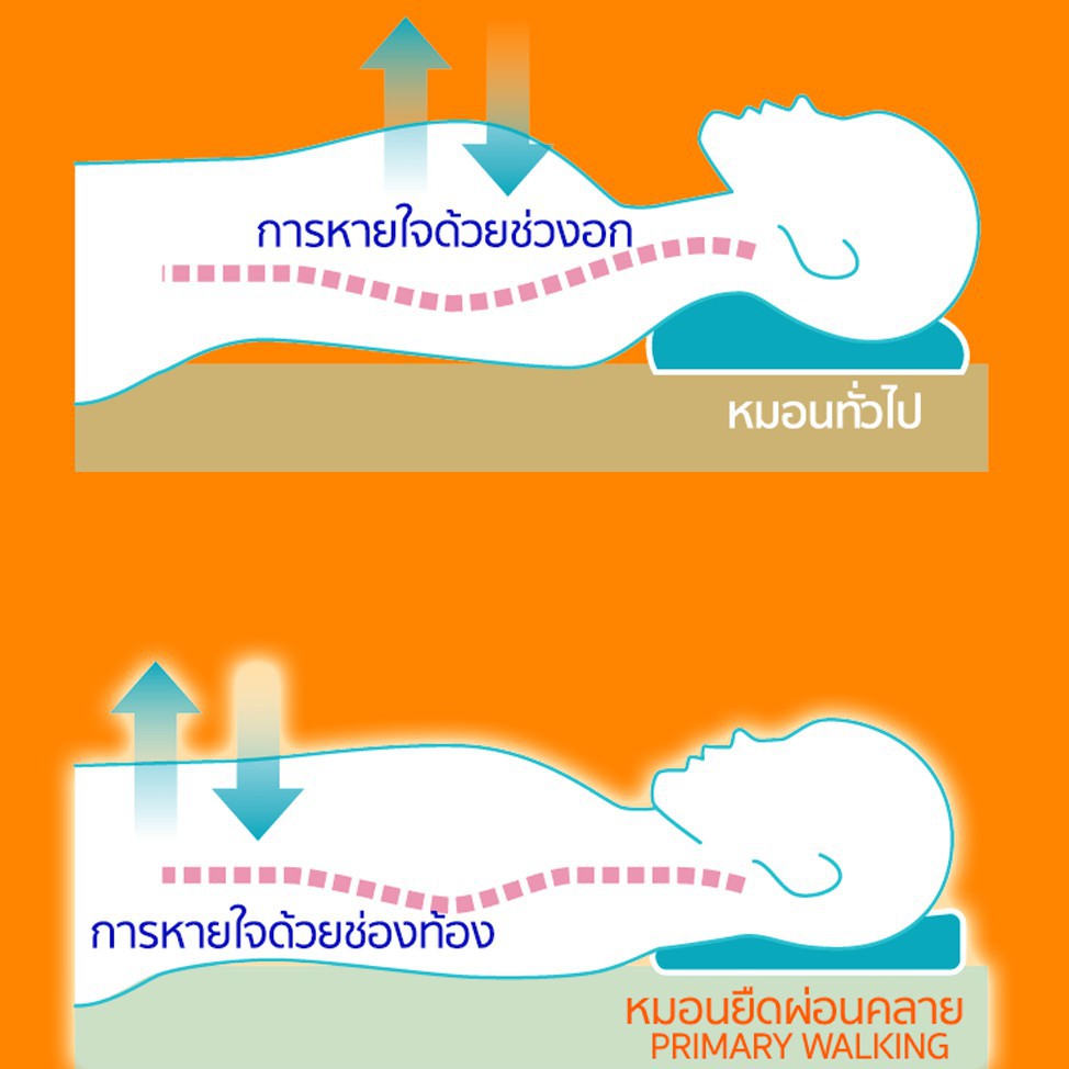 Primary Walking หมอน หมอนเพื่อสุขภาพ นอนหลับลึก ลดกรน หายใจลึก หลับได้สนิท จากญี่ปุ่น