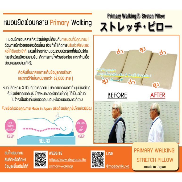 Primary Walking หมอน หมอนเพื่อสุขภาพ ลดกรน หายใจลึก ไม่ปวดคอ หลับได้สนิท จากญี่ปุ่น