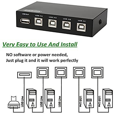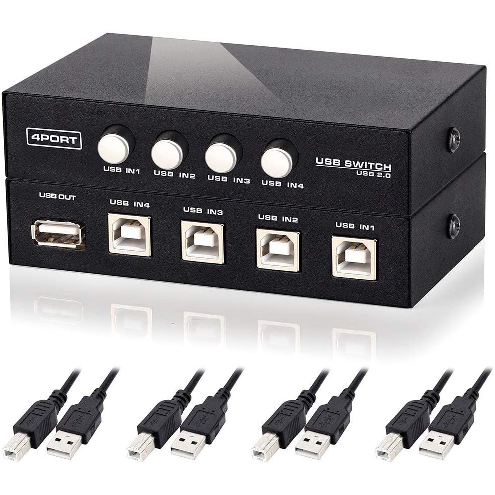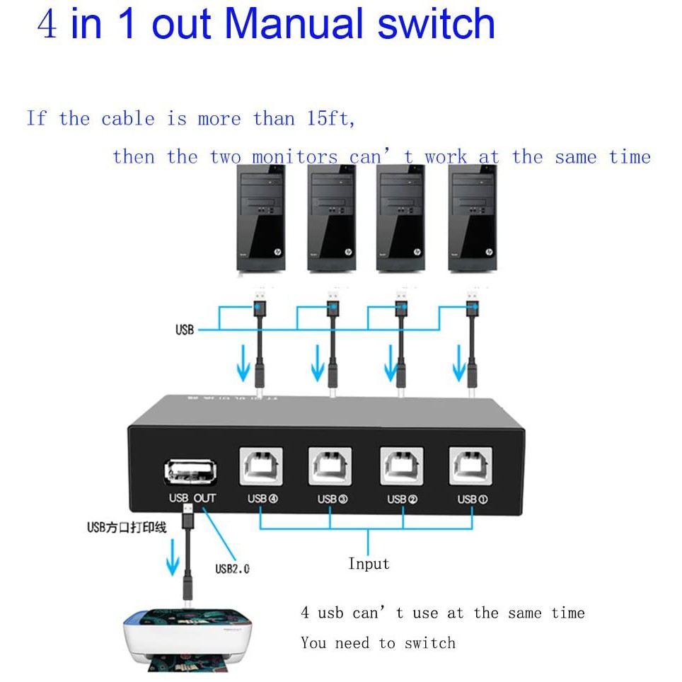Printer Switch,4 Port USB 2.0 Manual Printer Scanner Sharing Switch Hub 4 PC to 1 Splitter Adapter,4 Pack USB A to B Pri