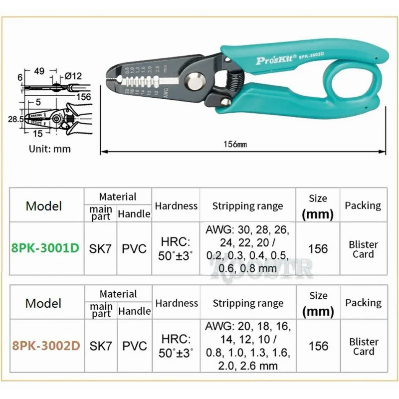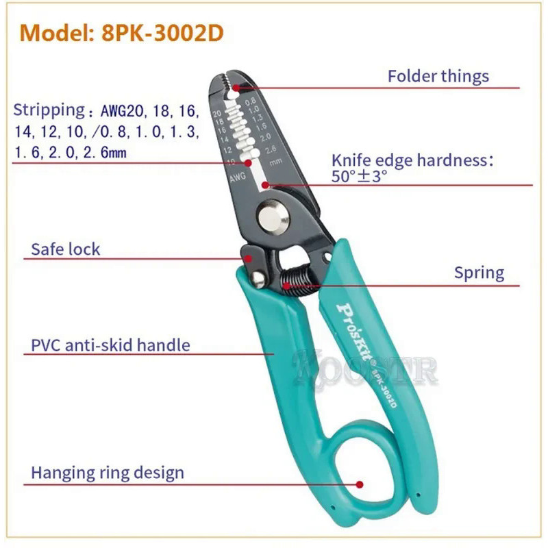 Pro'sKit 8PK-3001D 8PK-3002D high quality electronic wire stripper cutting pliers (AWG 30/28/26/24/22/20 precision plier