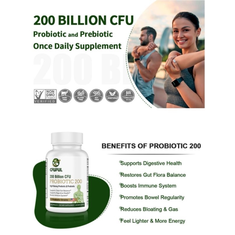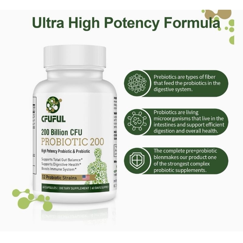 Probiotic Cfuful 200 Billion CFU Probiotic 200 High Potency 60 Capsules