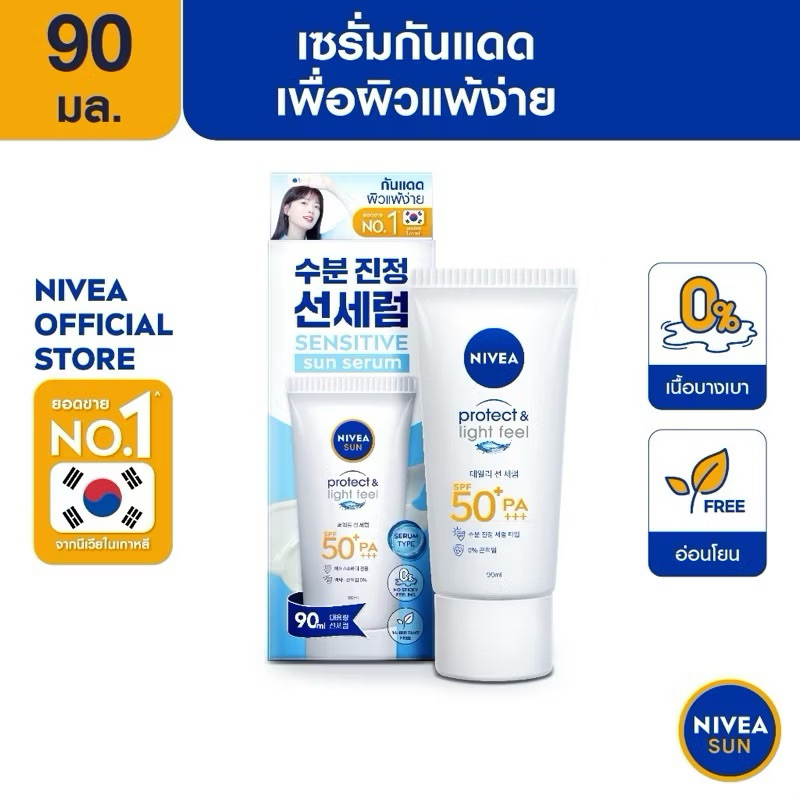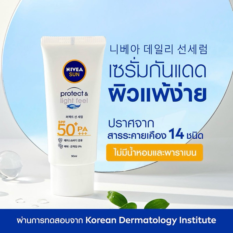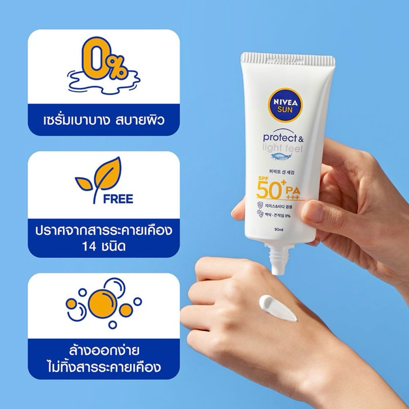 พร้อมส่ง💓| Nivea Sun นีเวีย ซัน เซนส์ซิทีฟ โพรเท็ค แอนด์ ไลท์ ฟีล SPF50+ PA+++ 90 มล.
