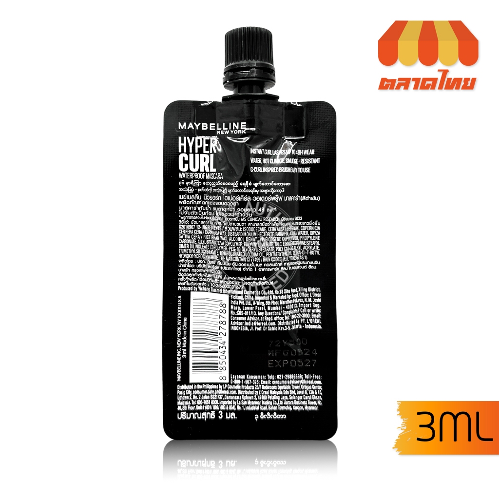 (แบบซอง) มาสคาร่า กันน้ำ เมย์เบลลีน ไฮเปอร์ เคิร์ล ขนาด 3 มล. Maybelline New York Hypercurl Water Proof Mascara 3 ml.