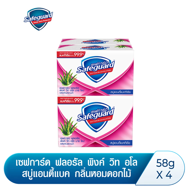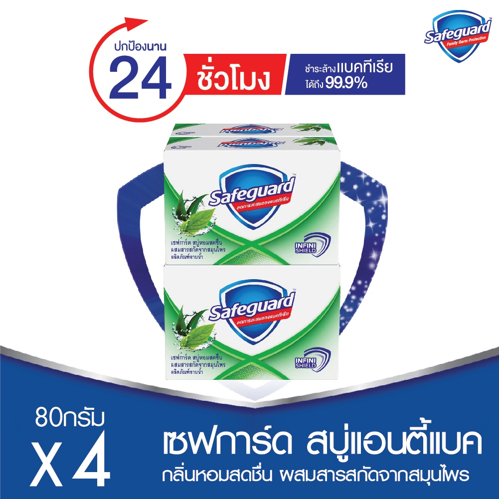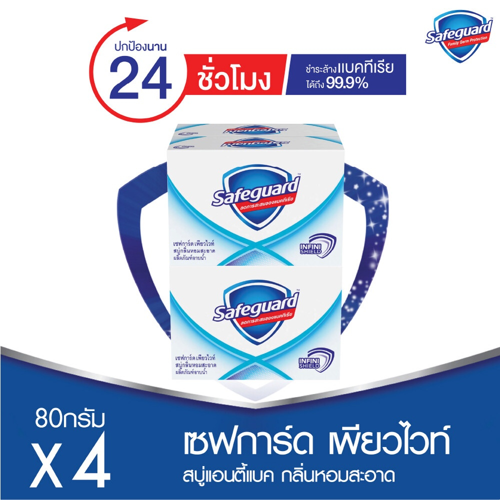 Safeguard เซฟการ์ด สบู่ก้อน ช่วยการสะสมแบคทีเรีย 48g. (แพ็ค4 ก้อน)