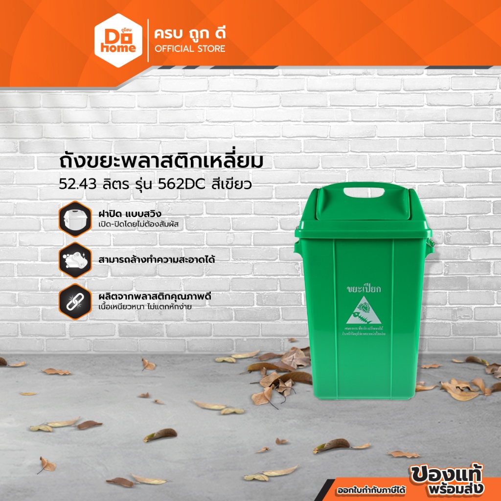 DECOS ถังขยะพลาสติกเหลี่ยม 52.43 ลิตร รุ่น 562DC สีเขียว |BAI|