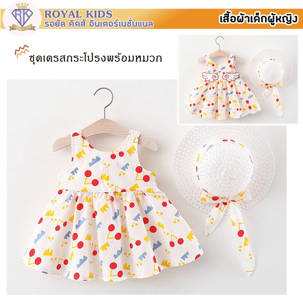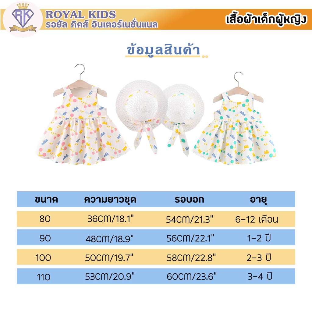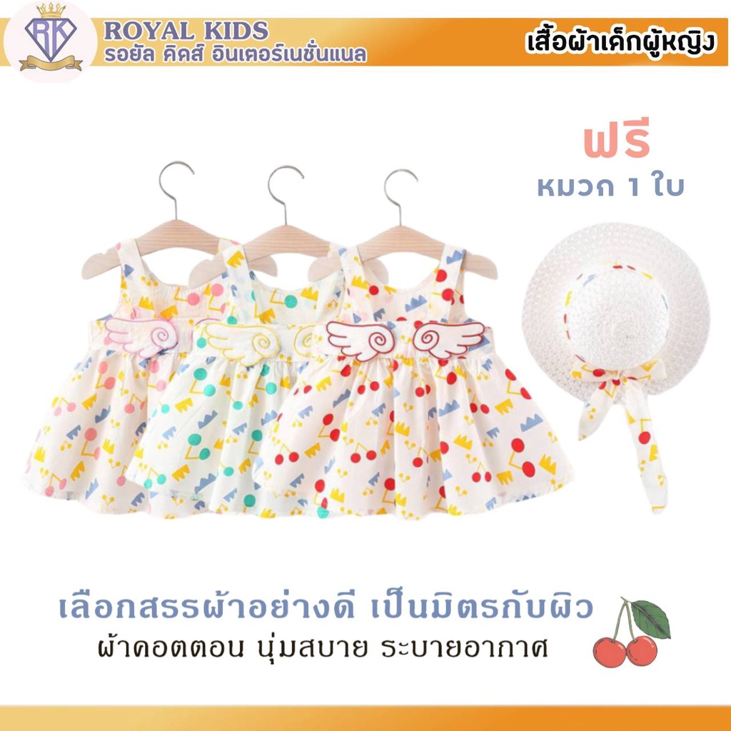 S0013 ชุดเด็กอ่อน แถมฟรี!!หมวก ชุดเดรสกระโปรงผ้าฝ้ายลายเชอร์รี่สําหรับเด็กผู้หญิงอายุ 6เดือน-4ปี เสื้อผ้าเด็กผู้หญิง