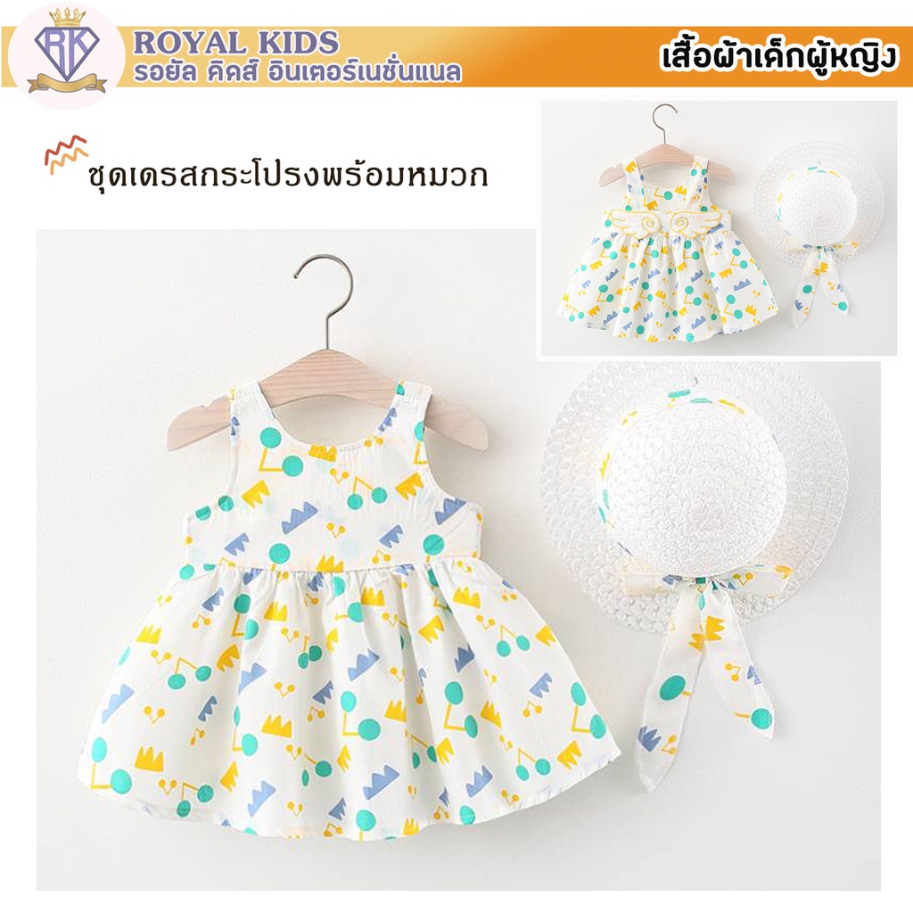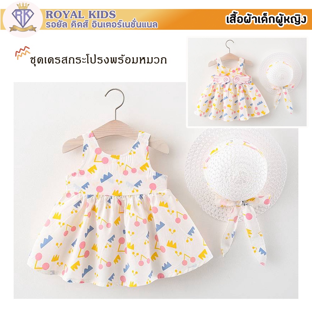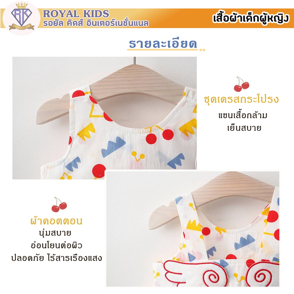 S0013 ชุดเด็กอ่อน แถมฟรี!!หมวก ชุดเดรสกระโปรงผ้าฝ้ายลายเชอร์รี่สําหรับเด็กผู้หญิงอายุ 6เดือน-4ปี เสื้อผ้าเด็กผู้หญิง