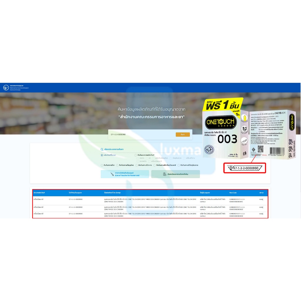 Onetouch 003 ถุงยางอนามัย วันทัช 003 ขนาด 52 มม. บรรจุ 12 ชิ้น [6 กล่องใหญ่] JJ 6323 ถุงยาง condom แบบบาง One touch