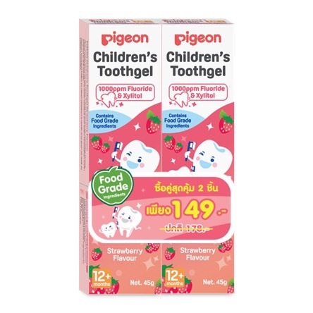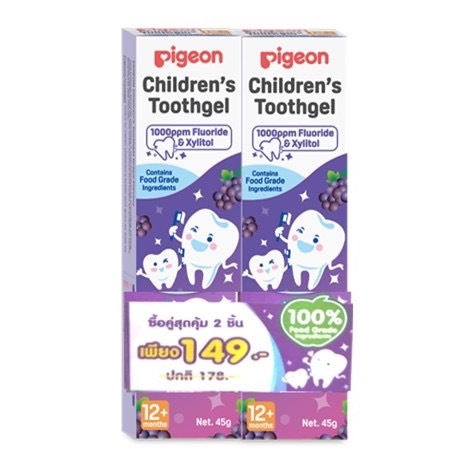 Pigeon พีเจ้น ยาสีฟันชนิดเจล 1000 PPM สำหรับเด็ก รสองุ่น และ รสธรรมชาติ