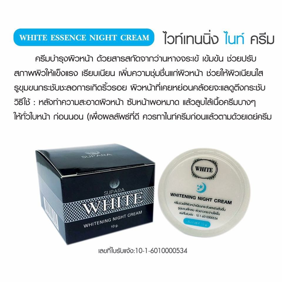 ครีมไวท์เอสเซ้นท์ White Essence Cream By Supara ผลิตภัณฑ์บำรุงผิวหน้า มี2ขนาด5,10g.