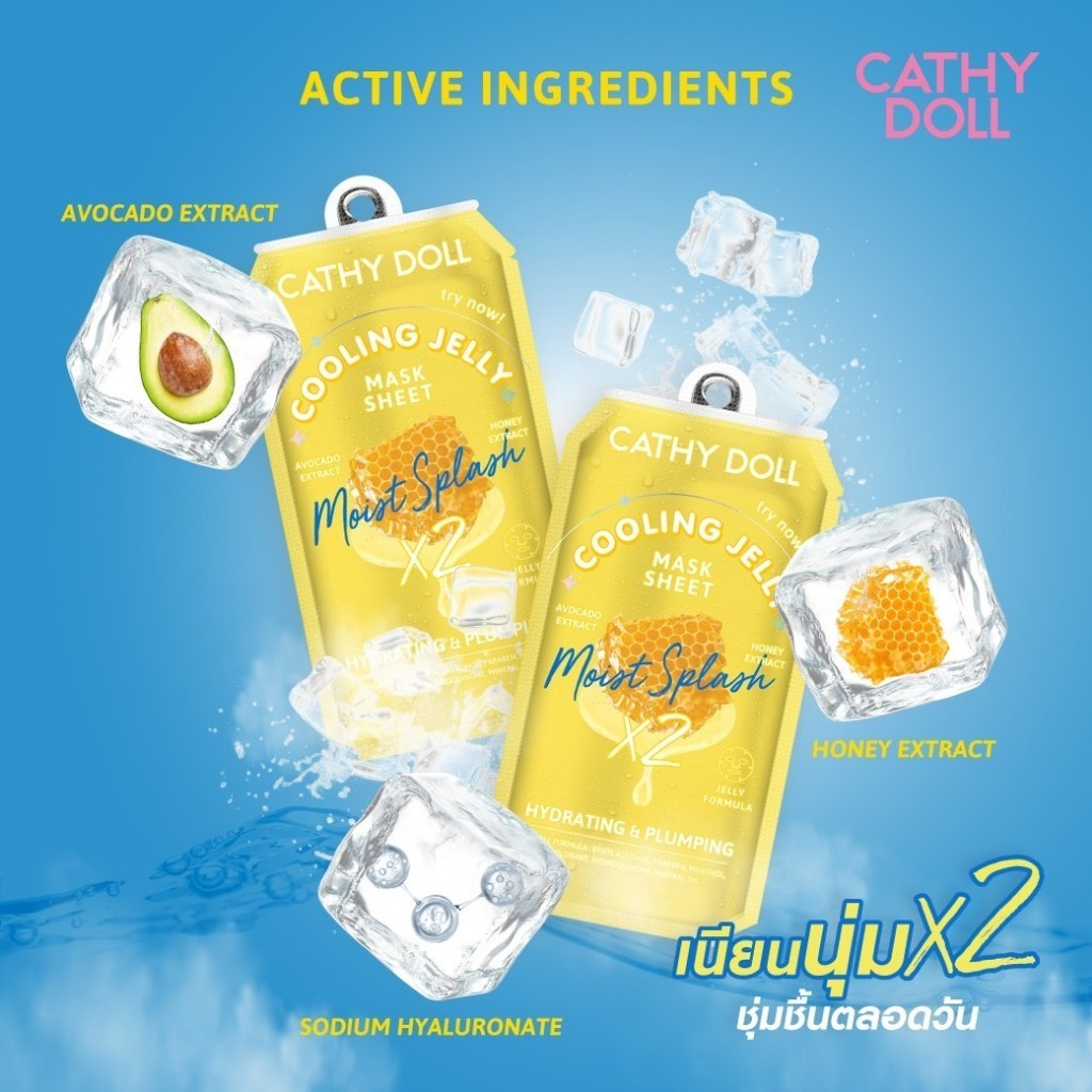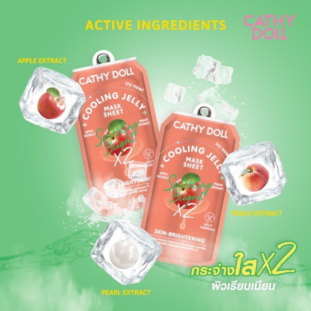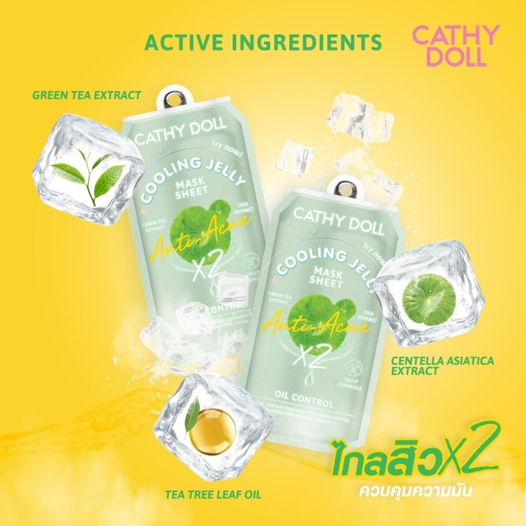 (1กล่อง 6ซอง) Cathy Doll Cooling Jelly Mask 25g มาสก์เจลลี่หน้าสดชื่น สูตรคูลลิ่ง คุมมัน ลดสิว