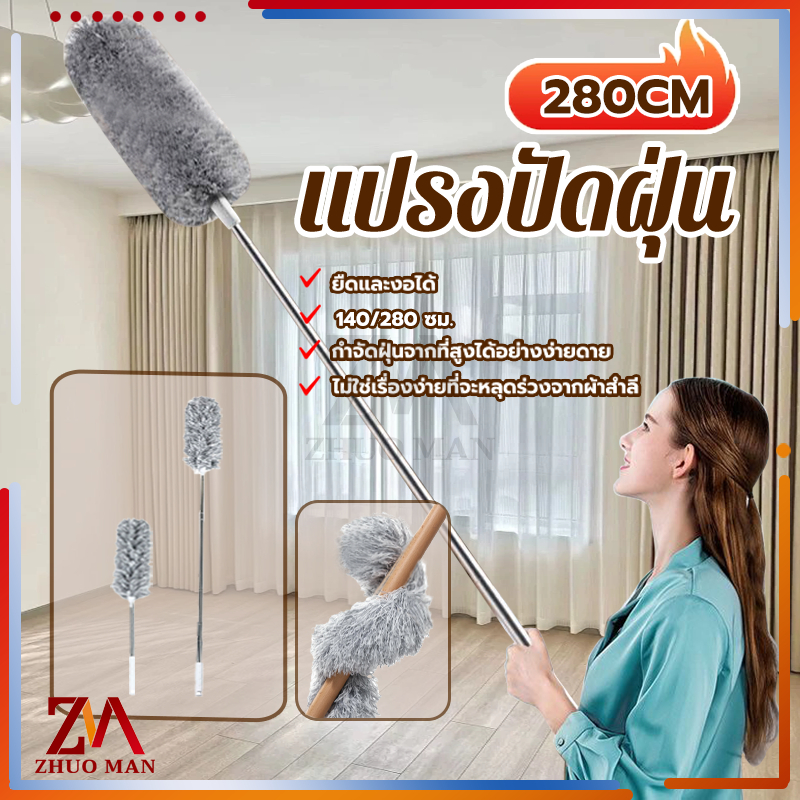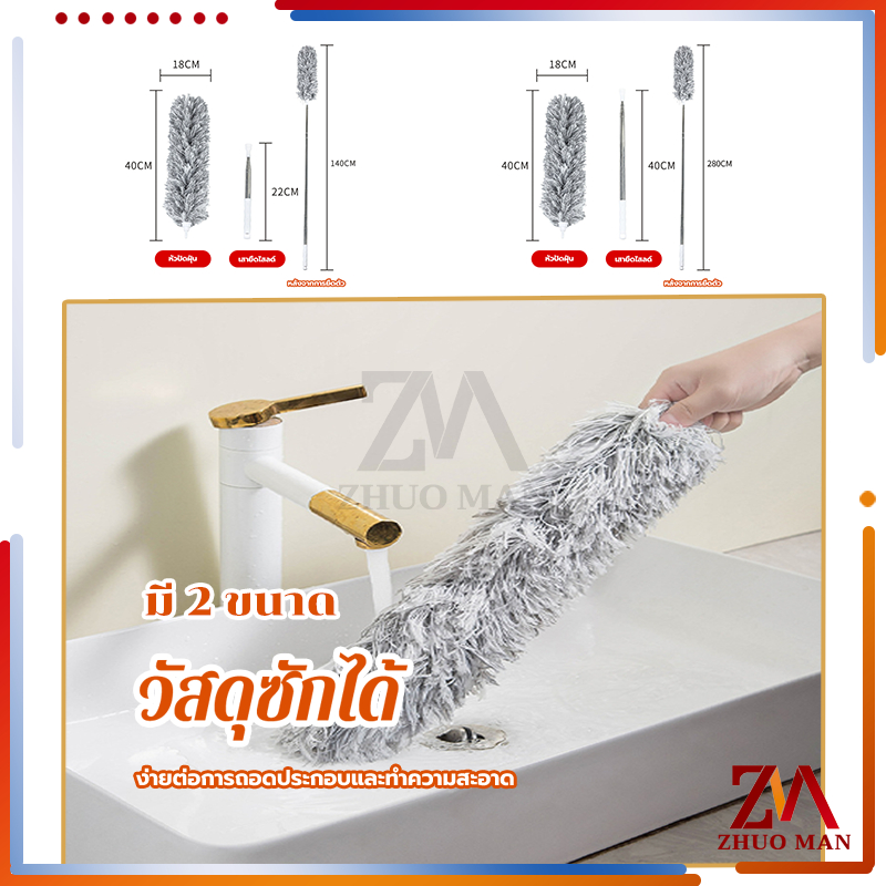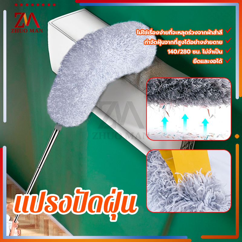 ไม้ปัดฝุ่น แปรงปัดฝุ่น ไม้กวาดหยากไย่ ไม้ปัดฝุ่นไมโครไฟเบอร์ ปรับความงอ ปรับยืดได้ 0.6-2.8 ม ฝุ่นไม่ปลิว ซักได้