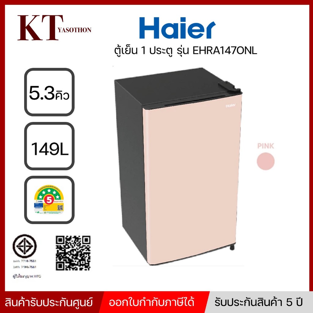 Haier ตู้เย็น 1 ประตู ความจุ 5.3 คิว 149 ลิตร รุ่น EHRA147ONL สีชมพู